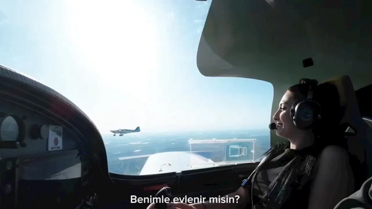 Gökyüzünde telsizle evlilik teklifi; 'Diz çökmemek için yaptın bunu değil mi'