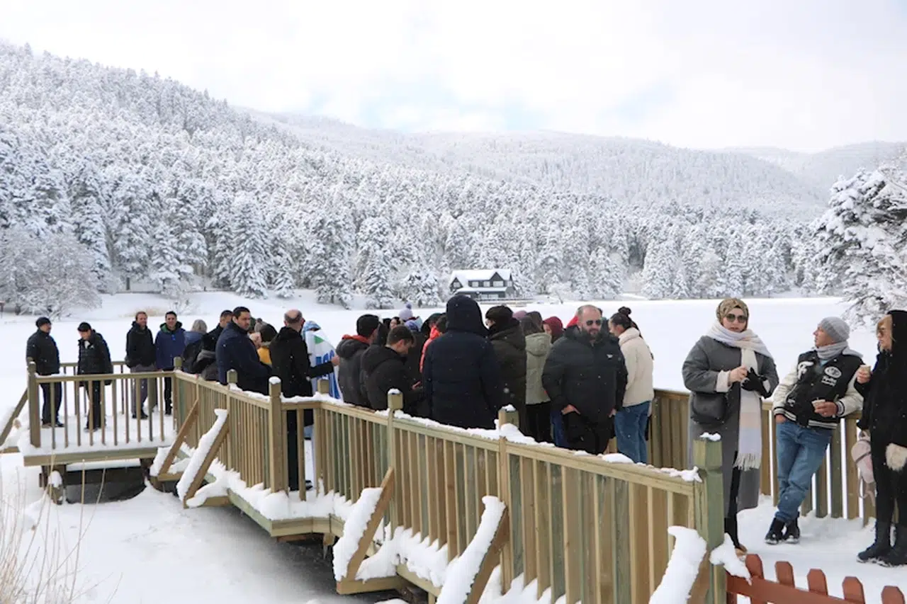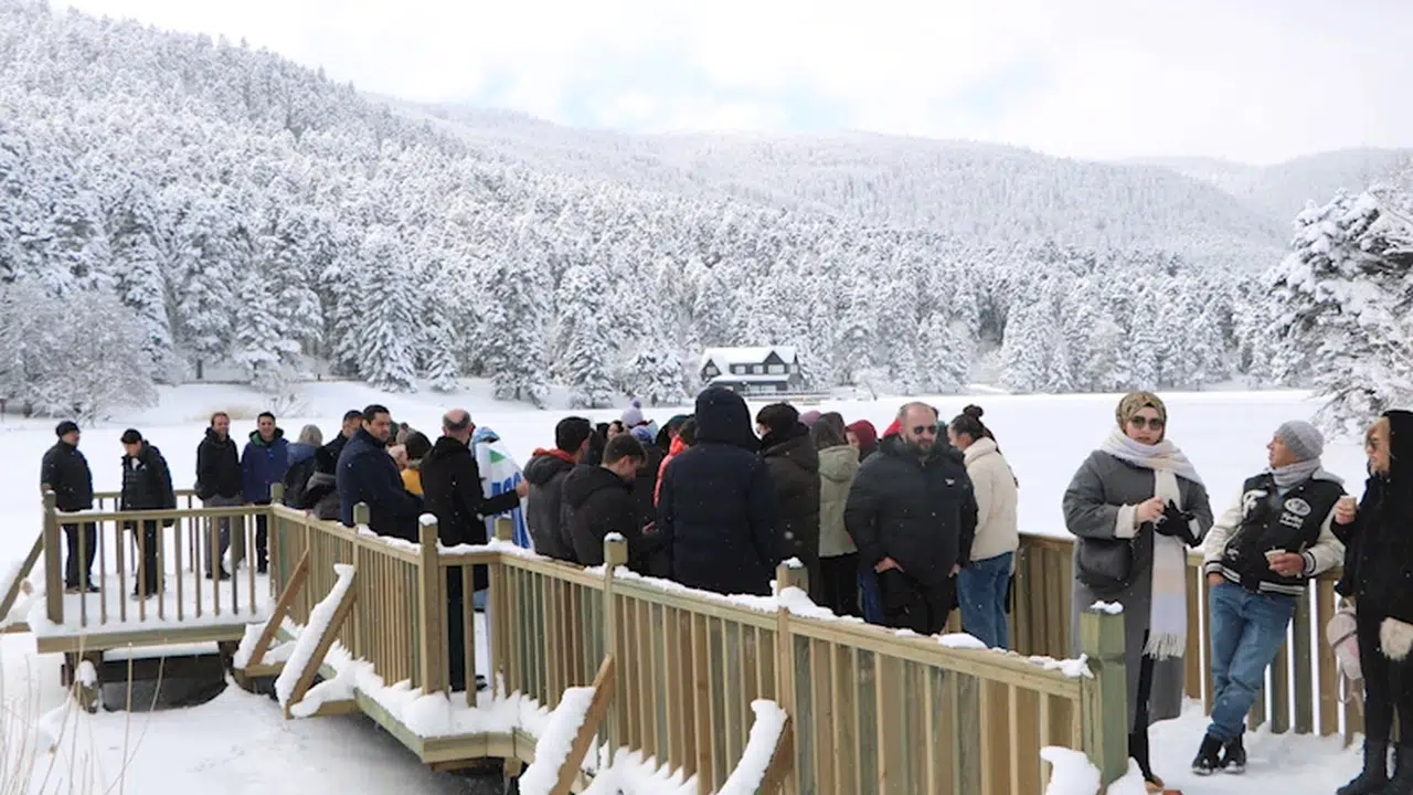 Çam ormanıyla çevrili Gölcük Tabiat Parkı, bir haftadır devam eden kar yağışıyla birlikte beyaz örtüyle kaplandı. Kent merkezine 12 kilometre uzaktaki park, hafta sonu ziyaretçilerin akınına uğradı. Ziyaretçiler, buz tutan gölün etrafında yürüyüş yaptı ve fotoğraf çektirdi. Kar kalınlığının 20 santime ulaştığı tabiat parkında çocuklar aileleri ile birlikte kızak kayarak güzel vakit geçirdi. (DHA)
