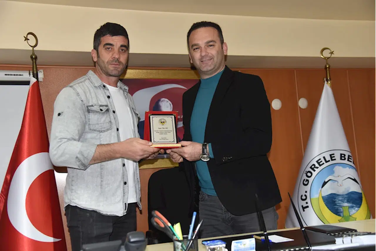 Belediye Başkanı Hasbi Dede, ilçeye bağlı İsmailbeyli köyü sahilinde 30 Eylül'de denizde boğulma tehlikesi geçiren iki kişinin sudan çıkmasını sağlayan itfaiye eri İlker Boz'u tebrik etti.