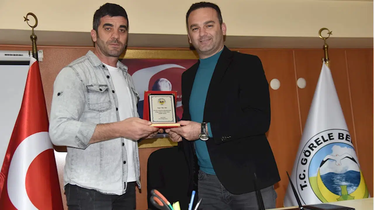 GİRESUN (AA) - Giresun'un Görele ilçesinde geçen ay denizde boğulma tehlikesi geçiren 2 kişiyi kurtaran itfaiye erine plaket verildi.