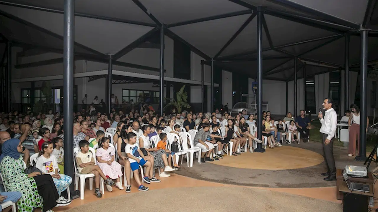 MERSİN, (DHA)- MERSİN’de Büyükşehir Belediyesi İklim Değişikliği ve Sıfır Atık Dairesi Başkanlığı bünyesinde hizmet veren ‘Mercan 100’üncü Yıl İklim ve Çevre Bilim Merkezi’nde ikinci ‘Ay Gözlem Etkinliği’ gerçekleştirildi.