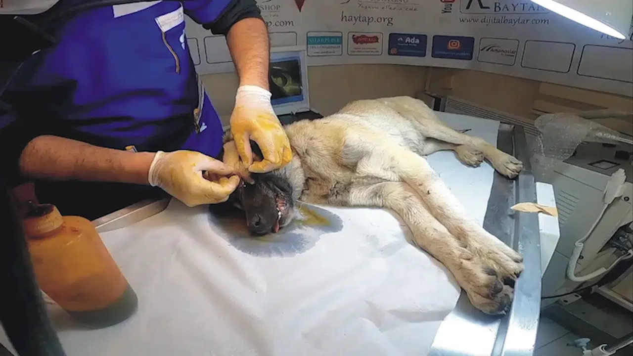 Köpeğin tedavisi ile ilgilenen Veteriner Hekim Ali Laçinbala ise “6 Şubat depremi bizleri derinden etkiledi ve üzerinden aylar geçmesine rağmen hala yaralarımızı bu küçük canlar ile sarmaya, kapatmaya çalışıyoruz. Bu 6 aylık olduğunu düşündüğümüz erkek köpeğimizin de göz küresi diğer köpeklerin saldırısı sonucu vücut dışına çıkmış. Özellikle ödemi küçültecek uygulamalar yaptıktan sonra göz küresini tekrar vücut içine yerleştirdik ve tekrar dışarı çıkmaması için göz operasyonlarında kullandığımız özel iplikler ile göz kapaklarını kenarlarından sabitleyerek operasyonu tamamladık. Böyle güzel bir operasyon ile bir cana daha şifa olduğumuz için çok mutlu ve müteşekkiriz. Tüm bu imkanları sağlayan destekçilerimize HAYTAP yönetim kurulu adına çok teşekkür ediyoruz” ifadelerini kullandı.