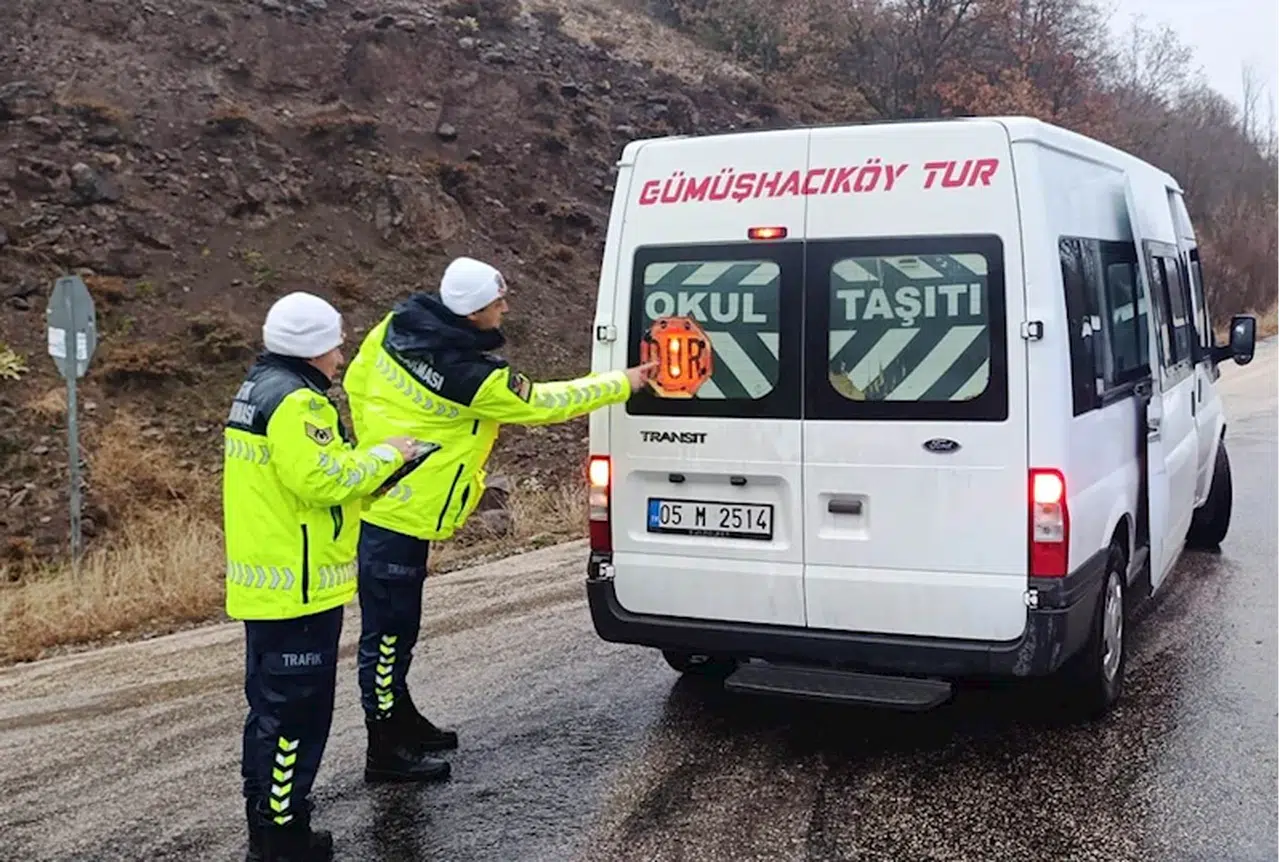 Gümüşhacıköy Kaymakamlığı öncülüğünde İlçe Milli Eğitim Müdürlüğü, jandarma ve polis ekiplerince, öğrencilerin güvenle yolculuk yapabilmesi için okul servis araçlarına yönelik denetim yapıldı.