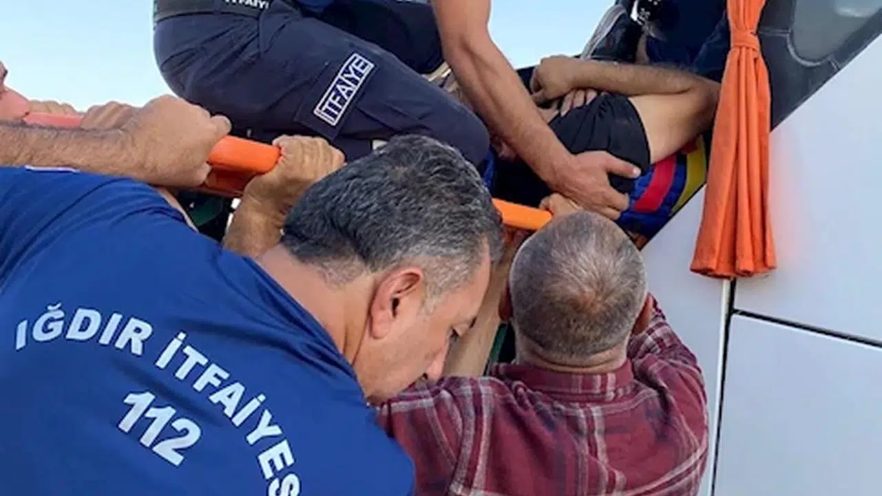 Kaza, saat 07.00 sıralarında Nahcivan-Iğdır kara yolunun Taşburun köyü mevkisinde meydan geldi. İran'dan yola çıkıp, Azerbaycan ve Türkiye üzerinden Gürcistan'a gitmekte olan, sürücüsü henüz tespit edilemeyen GS 922 SS Gürcistan plakalı otobüs, kontrolden çıkarak şarampole yuvarlandı. 1'i sürücü 3 kişinin bulunduğu otobüs, taklalar atarak sürüklendi. İhbarla bölgeye çok sayıda jandarma, sağlık ve itfaiye ekibi sevk edildi. Gürcistan uyruklu Ramız Akhverdıev (62) ile Azerbaycan uyruklu Süleyman Kerimoğlu (46), araçta sıkıştı. İtfaiyenin müdahalesi ile bulundukları yerden çıkartılan 2 yaralı, Dr. Nevruz Erez Devlet Hastanesi'ne kaldırıldı. Vücutlarının çeşitli yerlerinde birçok kırık oluşan yaralılar, tedaviye alındı. Üzerinde Azerbaycanlı şehitlerin fotoğrafının bulunduğu otobüs hurdaya dönerken, kaza ile ilgili soruşturma başlatıldı. (DHA)