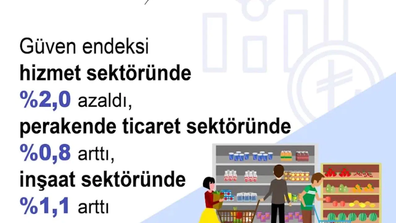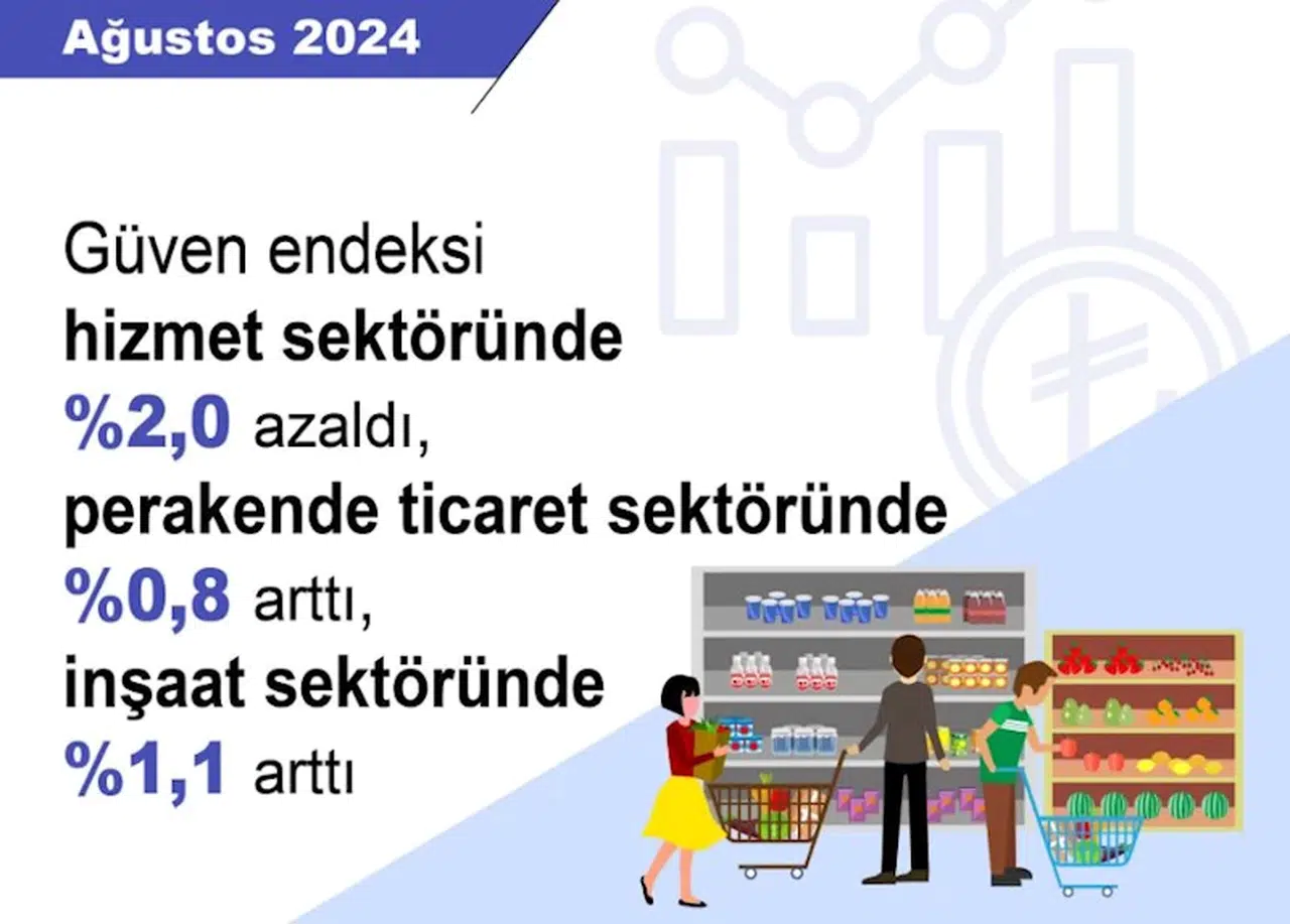 ANKARA, (DHA)- TÜRKİYE İstatistik Kurumu (TÜİK), ağustos ayında güven endeksinin hizmet sektöründe yüzde 2 azaldığını, perakende ticaret sektöründe yüzde 0,8, inşaat sektöründe yüzde 1,1 arttığını açıkladı.