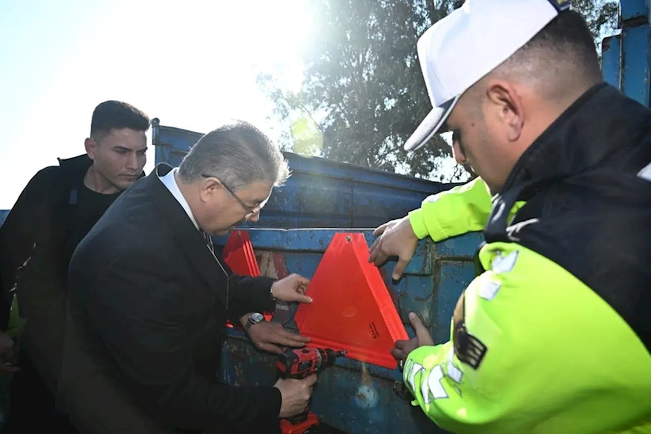 Vali Yılmaz yaptığı açıklamada, traktörlerin özellikle römorklarının arkasına reflektör takılması hususunun çok önemli olduğunu belirterek, “Çünkü kazaların çok önemli bir kısmı, özellikle bu bölgemizde, traktör römorklarının arkasında reflektör olmamasından dolayı oluyor. Gece saatlerinde, reflektör olmadığı zaman güvenli bir seyahat yapma imkânımız olmuyor, çünkü reflektör olmadığı zaman römorklar fark edilmediği için arkadan çarpma suretiyle çok sayıda kaza oluyor. Güvenli seyahat için reflektörün çok önemli bir görevi var. Aydınlatma, fark edilme, yansıtma özelliğini kaybetmiş reflektörlerimizin yenilenmesi lazım, bu çok maliyetli değil. Çiftçilerimizin bu hususu asla ihmal etmemeleri gerekiyor. Biz de bugün bu hususun önemli olduğunu belirtmek, bu konuda farkındalık oluşturmak anlamında, İl Jandarma Komutanlığımız organizesinde reflektör dağıtımı yaptık. Çünkü bu husus gerçekten hayat kurtaracak, güvenli seyahati sağlayacak bir husus. Dolayısıyla her sene 500 reflektörü traktörlerimizin römorklarına takıyoruz. Bu hususta jandarmamız, emniyetimiz, güvenlik güçlerimiz gerçekten çok büyük hassasiyet gösteriyorlar. Traktör sahiplerimizden bu konuda azami gayret, dikkat göstermelerini ve bunu asla ihmal etmemeleri gerektiğini bir kez daha hatırlatıyorum. Kıymetli hemşerilerimize kazasız, hayırlı seyahatler diliyorum.” diye konuştu. (DHA)