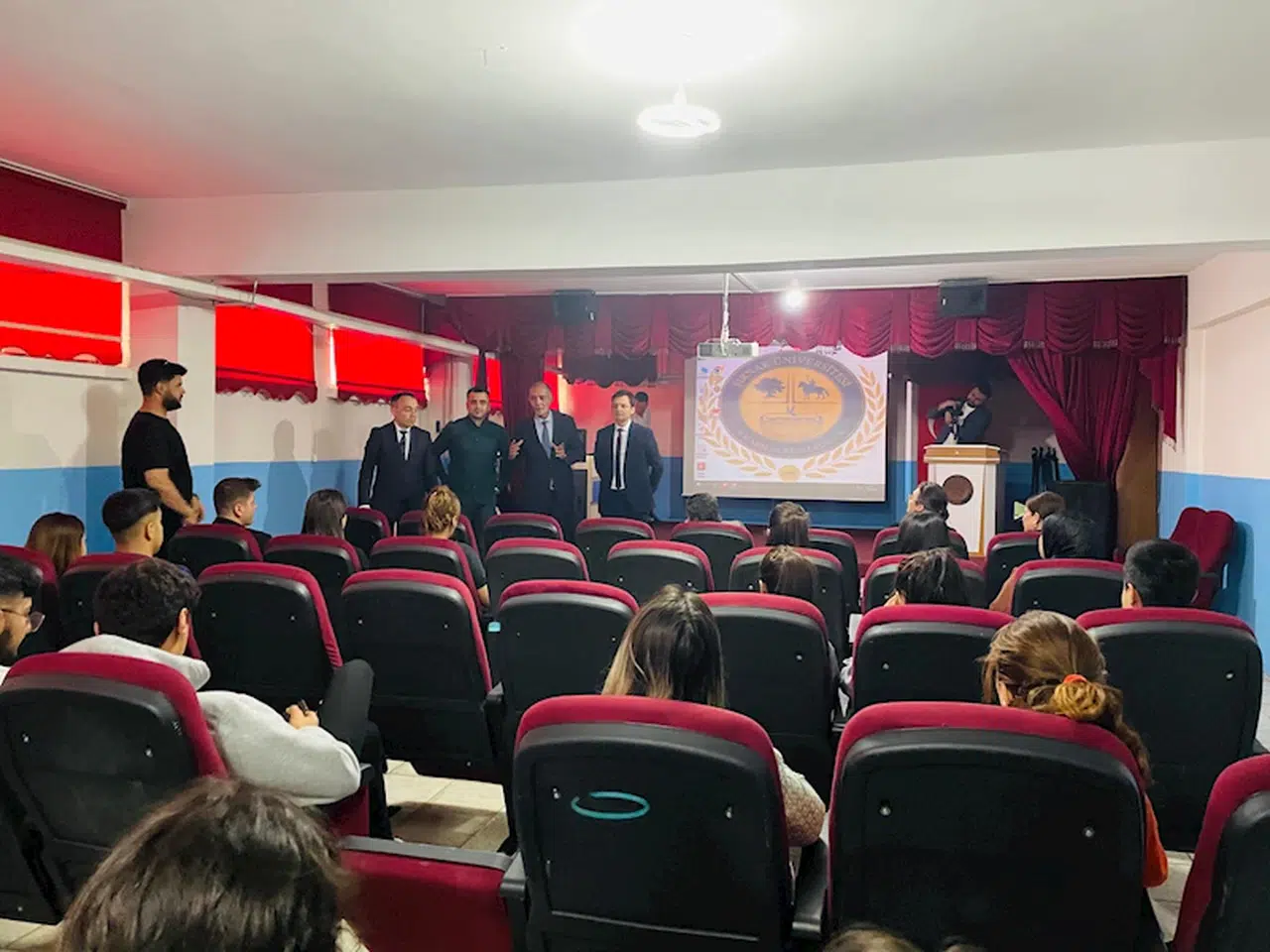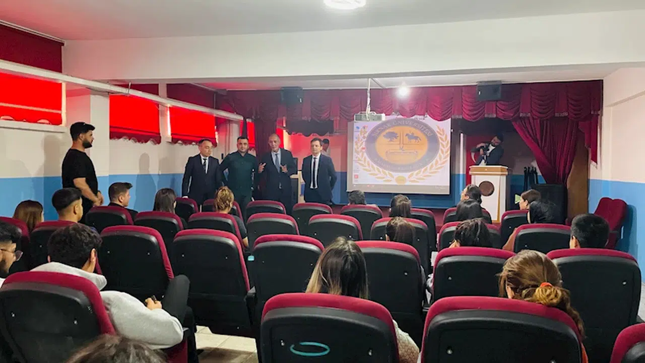 Mehmet Selim YALÇIN/SİLOPİ(Şırnak),(DHA)- ŞIRNAK Üniversitesi Silopi Meslek Yüksekokulu’nda düzenlenen seminerde, İpekyolu Gümrük ve Dış Ticaret Bölge Müdürü Ayhan Coşkuner, Habur Sınır Kapısı’nın işleyişi, ekonomik katkısı ve öğrencilere sunabileceği kariyer fırsatları hakkında bilgi verdi.