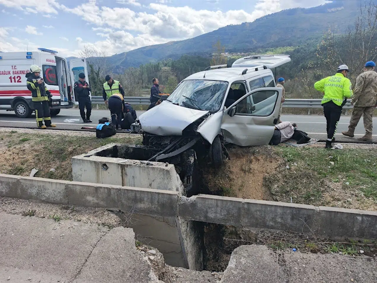 Hafif ticari araç, beton menfeze çarptı; 1 ölü, 2 yaralı