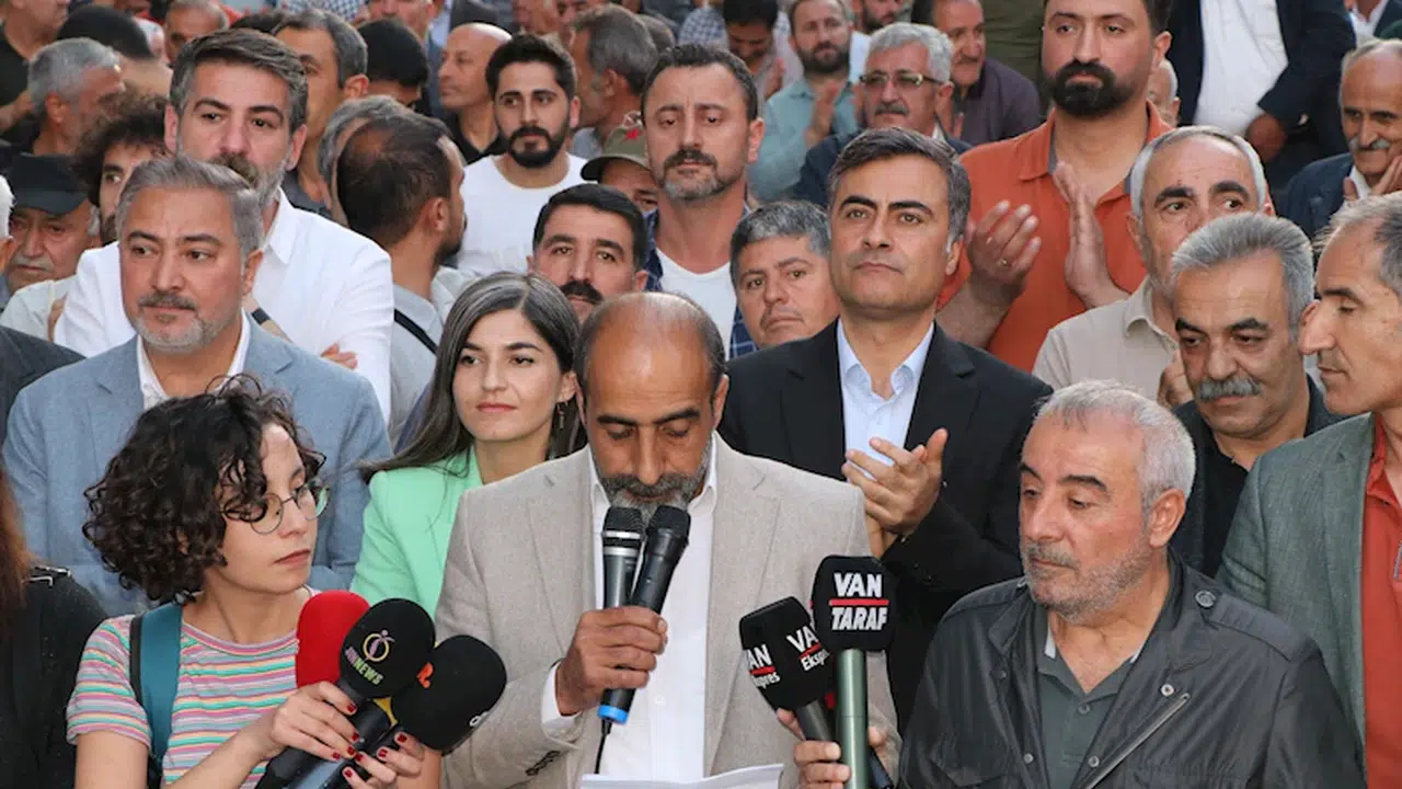 Hakkari Belediye Başkanı Mehmet Sıddık Akış'ın gözaltına alındıktan sonra yargılandığı mahkemece tutuklanarak cezaevine gönderilmesi ve yerine kayyım atamasına yönelik tepkiler sürerken, Van'da STK'ların içinde yer aldığı Emek ve Demokrasi Platformu öncülüğünde basın açıklaması yapıldı. Kent merkezindeki sanat sokakta düzenlenen açıklamaya, DEM Parti Van Milletvekili Zülküf Uçar, Büyükşehir Belediyesi Eş Genel Başkanları Abdullah Zeydan, Neslihan Şedal, DEM Parti Van İl Eş Başkanları Gülşen Kurt, Veysi Dilekçi, KESK Eş Genel Başkanı Ahmet Karagöz ve partililer katıldı. 'Kayyım idaresi değil, halk idaresi’, 'Kayyıma ve faşizme geçit yok' pankartının açıldığı basın açıklamasını Van Ziraat Mühendisleri Odası Başkanı, Emek ve Demokrasi Platformu Eş Sözcüsü Engin Işık yaptı.