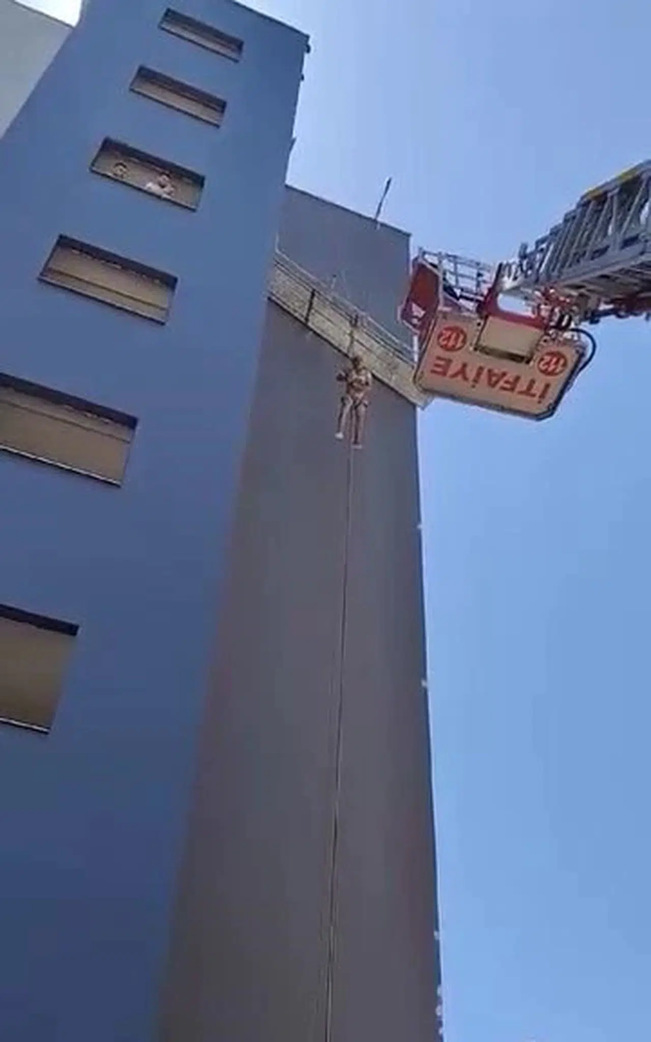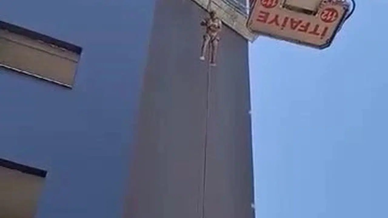MERSİN, (DHA)- MERSİN’in Mezitli ilçesinde 7 katlı binanın inşaatında halatın kopması sonucu iskelede asılı kalan işçi, itfaiye ekiplerince kurtarıldı.