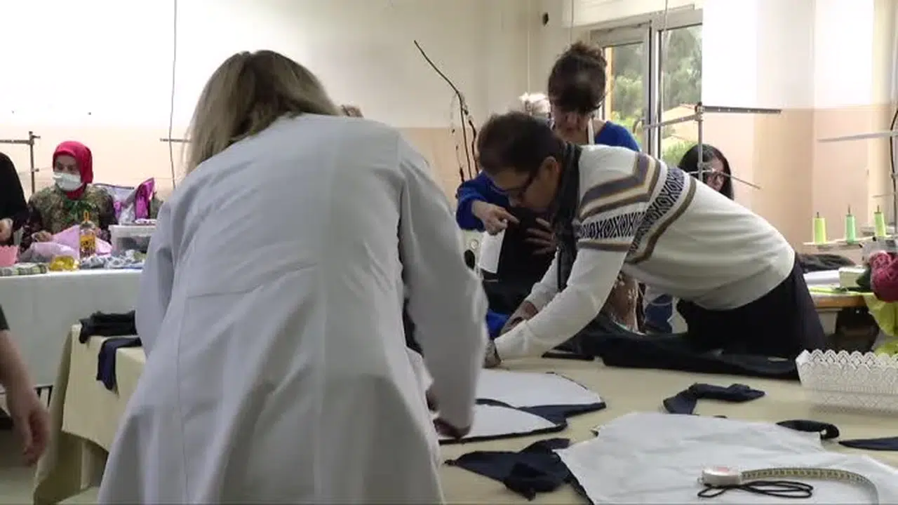 Karşıyaka Halk Eğitimi Merkezi Müdürü Suat Korkmaz, merkez olarak Kovid-19 salgını sırasında hastaneler için cerrahi önlük ve maske, 6 Şubat'taki depremlerin ardından da depremzedeler için uyku tulumu, kıyafet ve eşofman diktiklerini hatırlattı.