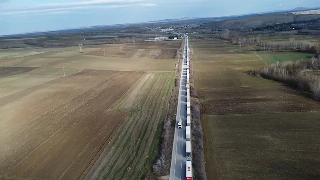 Türkiye'nin ihraç ürünlerini Avrupa ülkelerine taşıyan TIR'lar, Edirne'den Bulgaristan'a açılan Hamzabeyli Sınır Kapısı'nda 31 kilometre TIR kuyruğu oluşturdu. Bulgaristan tarafının yoğunluğa cevap verememesi nedeniyle oluşan kuyrukta TIR şoförleri saatlerce bekledi. Sıraya dün girdiğini söyleyen TIR şoförü Osman Yılmaz, "Şu an 22 kilometre var gümrük sahasına girmemize. Gümrük sahasından ne zaman çıkacağız onu da bilmiyoruz. Bu duruma bir el atılması lazım. Burada bekliyoruz böyle, ekmek yok su yok, affedersiniz tuvalet yok. Dün 33 kilometreden girdim. 11 kilometre yol gelebilmişim. 24 kilometre var daha önümde. Demek ki daha iki gün daha buradayım" dedi.