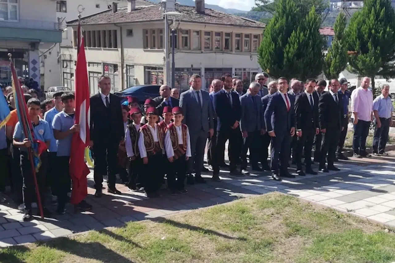 Cumhuriyet Meydanı'nda düzenlenen programda Hanönü Milli Eğitim Müdürü Serkan Demirkıran tarafından Atatürk Anıtı'na çelenk konuldu.