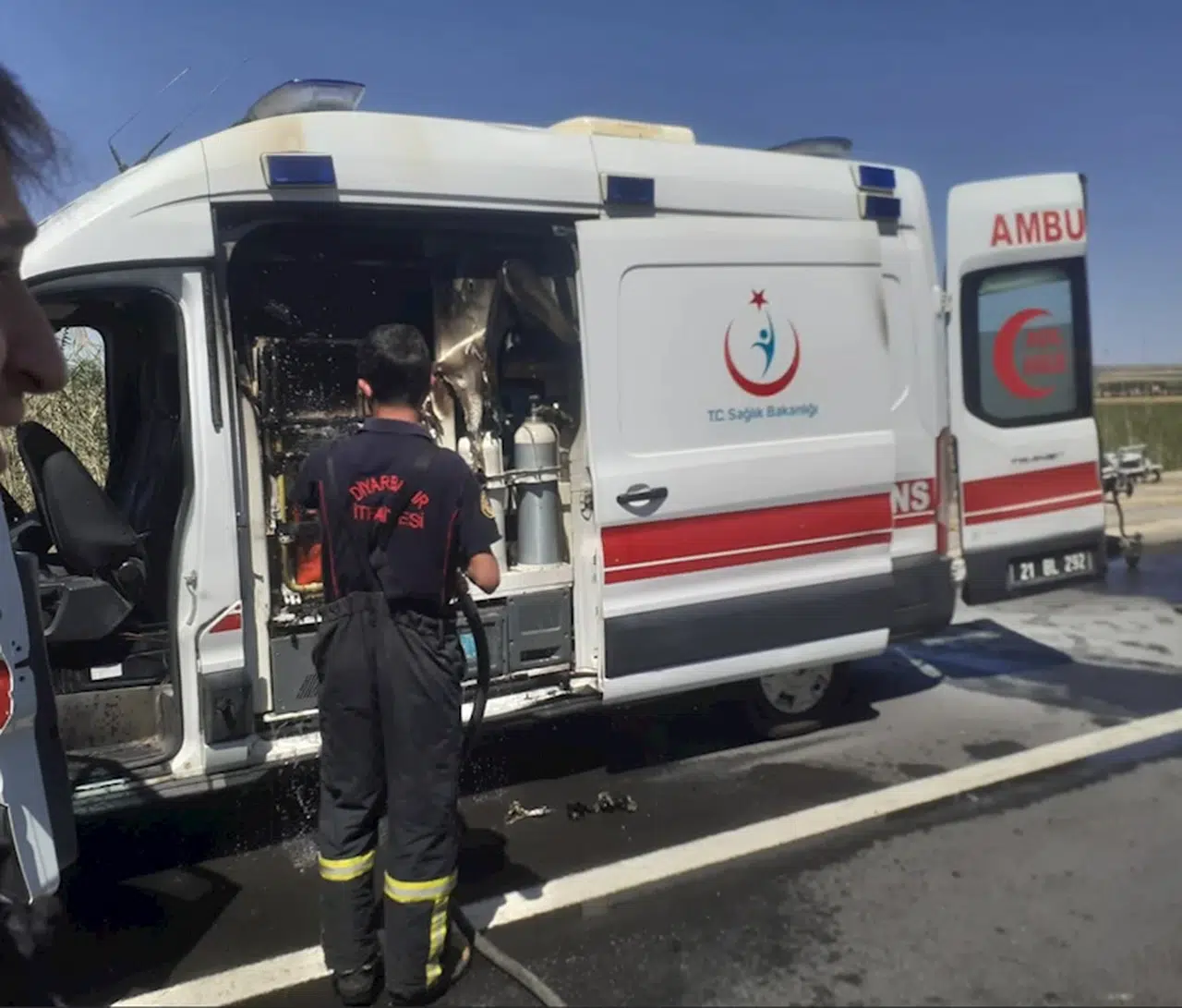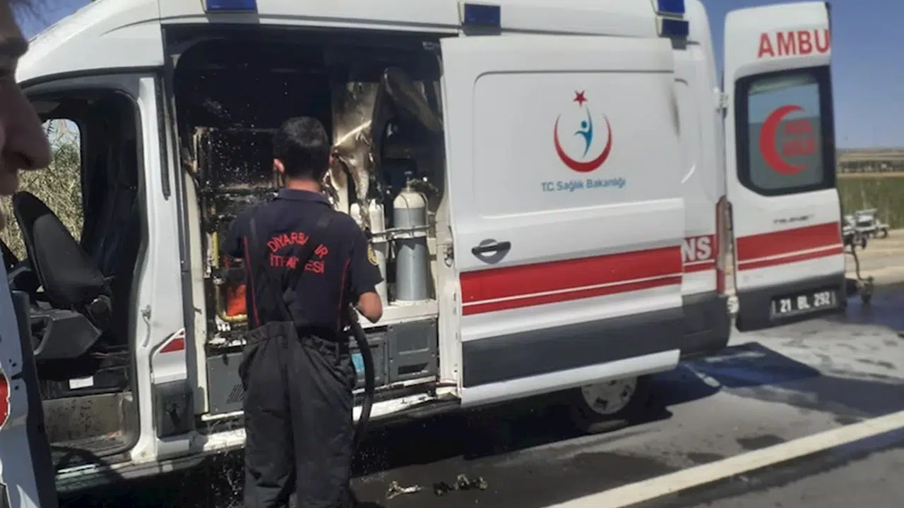 Sur ilçesi Hayati Avşar Caddesi'nde 21 BL 292 plakalı ambulansın arka kabini, seyir halindeyken henüz bilinmeyen nedenle alev aldı. Sürücü ve ambulanstaki 2 sağlık personeli, alevlere yangın tüpüyle müdahale etti. İhbarla olay yerine sevk edilen itfaiye ekiplerinin müdahalesiyle yangın kontrol altına alınıp söndürüldü. Ambulansta hasar oluşurken, yangının çıkış nedeni araştırılıyor. (DHA)