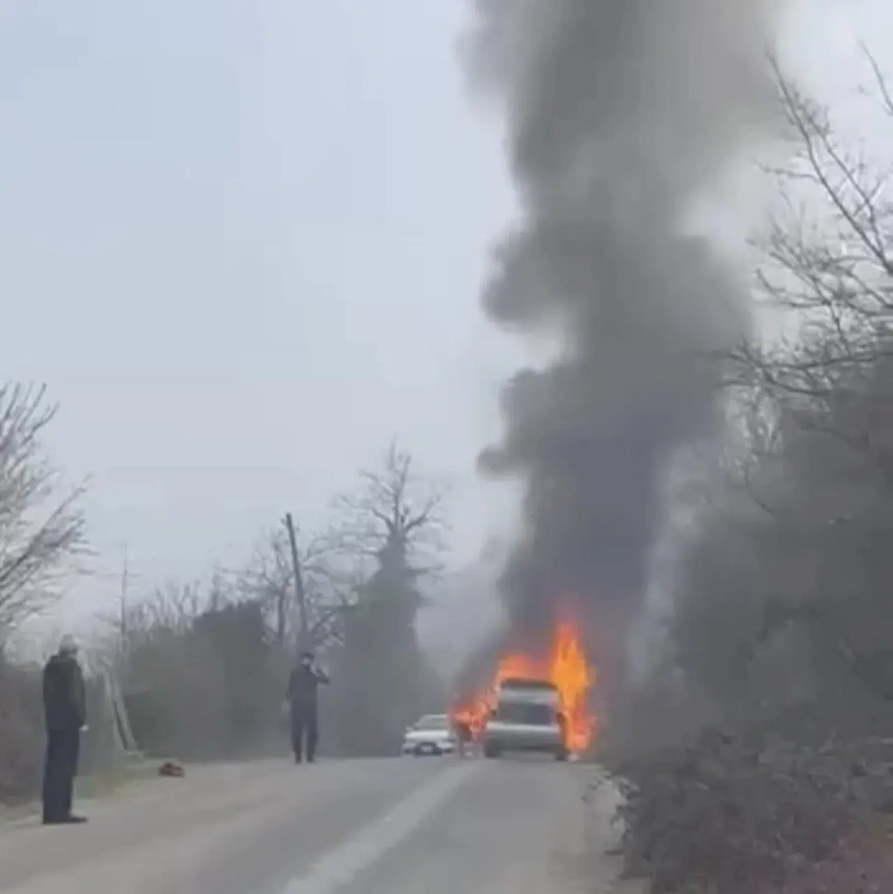 Hareket halindeyken alev alan otomobil, kullanılamaz hale geldi
