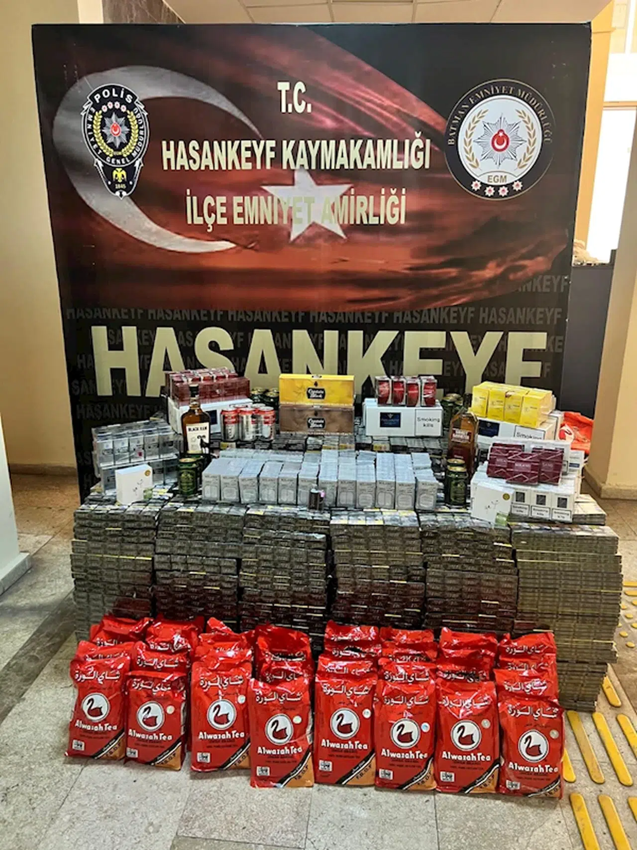 Hasankeyf ilçesinde, İlçe Emniyet Amirliği ekipleri tarafından uygulama noktasında durdurulan bir araçta yapılan aramada, 9 bin 290 paket gümrük kaçağı sigara, 2 kablosuz kulaklık, 32 çay, 1 elektronik sigara, 2 litre alkollü içecek, 18 kutu alkollü içecek ve 5 puro ele geçirildi. Olay ile ilgili gözaltına alınan 2 şüpheli hakkında adli işlem başlatıldı.(DHA)