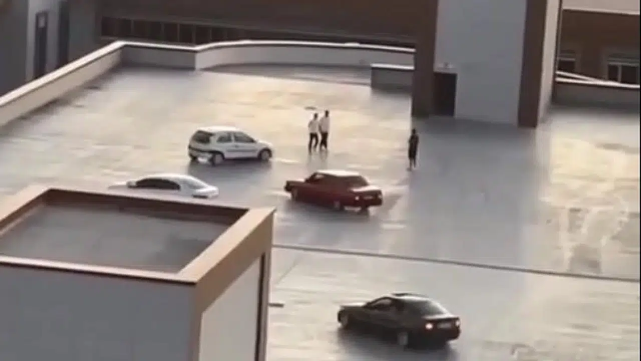 Olay, dün akşam saatlerinde Ankara'nın Sincan ilçesinde meydana geldi. Sincan Eğitim ve Araştırma Hastanesi'ne ait çok katlı otoparkın çatısında 2 otomobil sürücüsünün drift attığı görüldü. Bu sırada otopark çatısında 6 otomobil ve bir motosikletlinin olduğu tespit edildi. O anlar, çevredeki bir kişi tarafından cep telefonu kamerasıyla kaydedildi. Ankara Valiliği, sosyal medyada da yer alan görüntülerle ilgili inceleme başlattı.