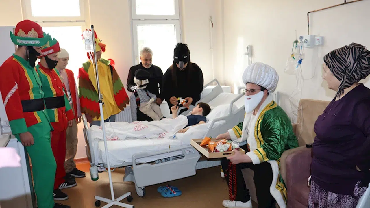 Hastanede yatan çocuklara Hacivat, Karagöz ve Nasreddin Hocalı bayram sürprizi