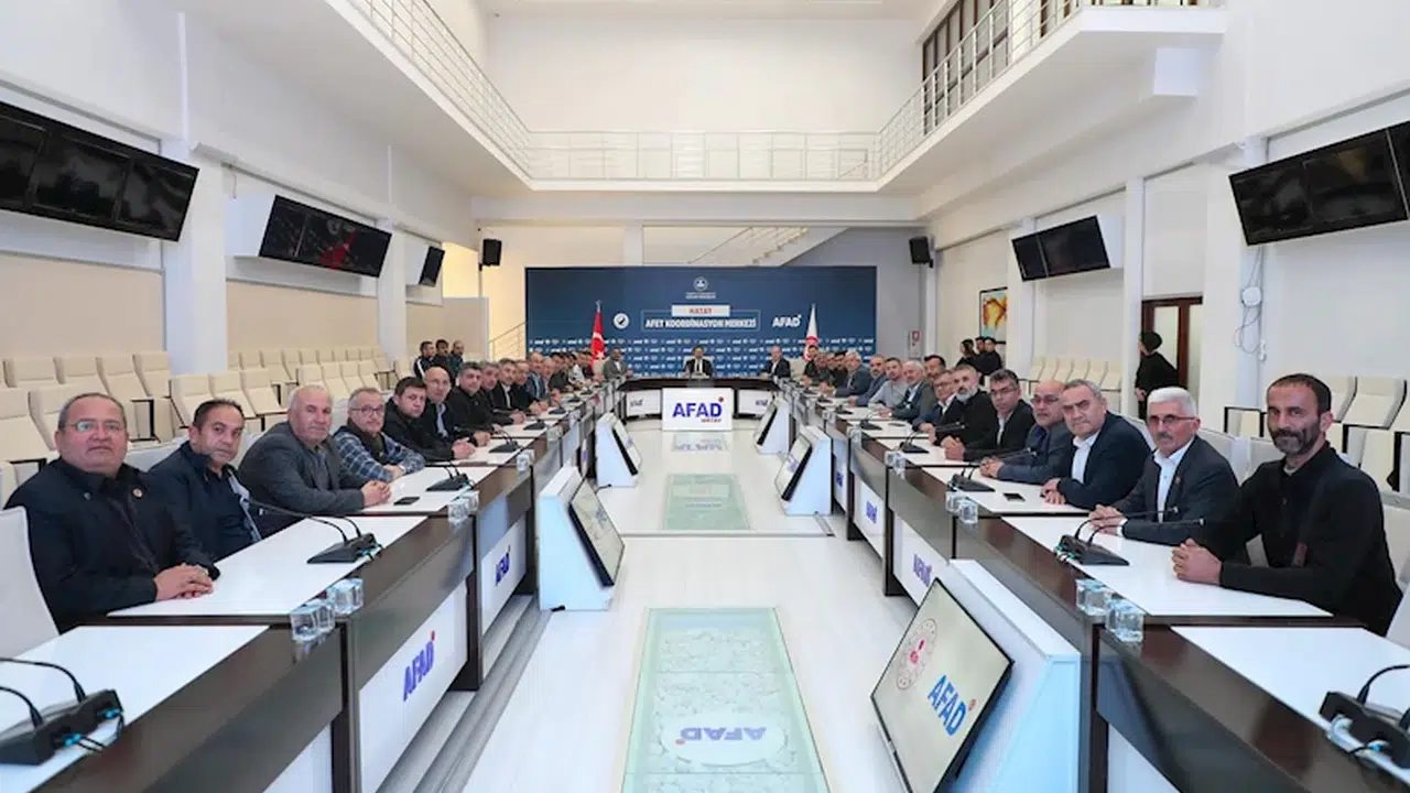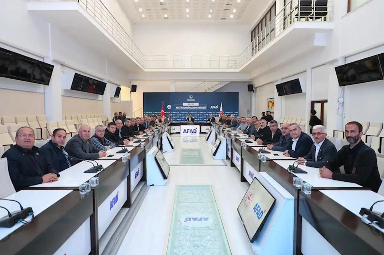 6 Şubat deprem felaketinin ardından Hatay’a en fazla destek olan illerin başında gelen Konya’nın Hatay’da yaptığı çalışmaların değerlendirildiği toplantıda Vali Masatlı, tüm Konya halkına Hatay’a yönelik desteklerinden dolayı teşekkür etti. Konyalı muhtarlar, Hatay’a destek olmak için geldikleri Hatay’da kabullerinden dolayı Vali Masatlı’ya teşekkürlerini sundular. (DHA)