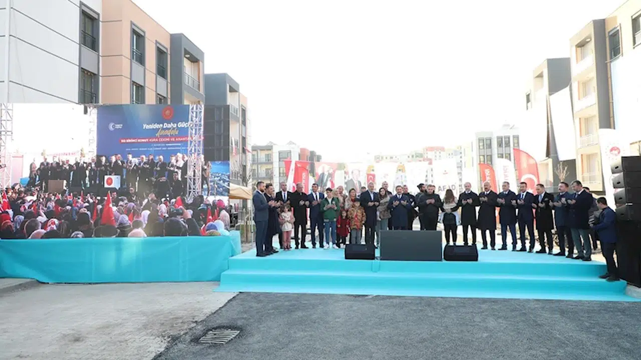Hatay’ın 32.160’ıncı Hak Sahibinin Belirlendiği kuraya Cumhurbaşkanı Recep Tayyip Erdoğan canlı bağlantıyla bağlandı. 6 Şubat 2023 tarihinde Anakaradaki En Büyük Afetlerden birini yaşayan Hatay’da; bugün 5.900 deprem konutunun daha hak sahibi belirlendi. Kura Çekim ve Anahtar Teslim Töreni; Hatay Valisi Mustafa Masatlı, Milletvekilleri, Hatay Büyükşehir Belediye Başkanı Mehmet Öntürk, Siyasi Parti Temsilcileri, Vali Yardımcıları, İl ve İlçe Protokolü ile çok sayıda vatandaşın katılımıyla TOKİ Başkanlığı’nın deprem bölgesindeki en büyük şantiyesi olan Dikmece TOKİ Afet Konutları’nda gerçekleştirildi. TOKİ’nin 11 deprem ili içindeki en büyük şantiyesinin kurulu bulunduğu Dikmece’de 5.900 hak sahibi vatandaş konutlarına kavuştu. Vali Masatlı, konutların anahtarlarını bizzat vatandaşlara teslim etti. (DHA)