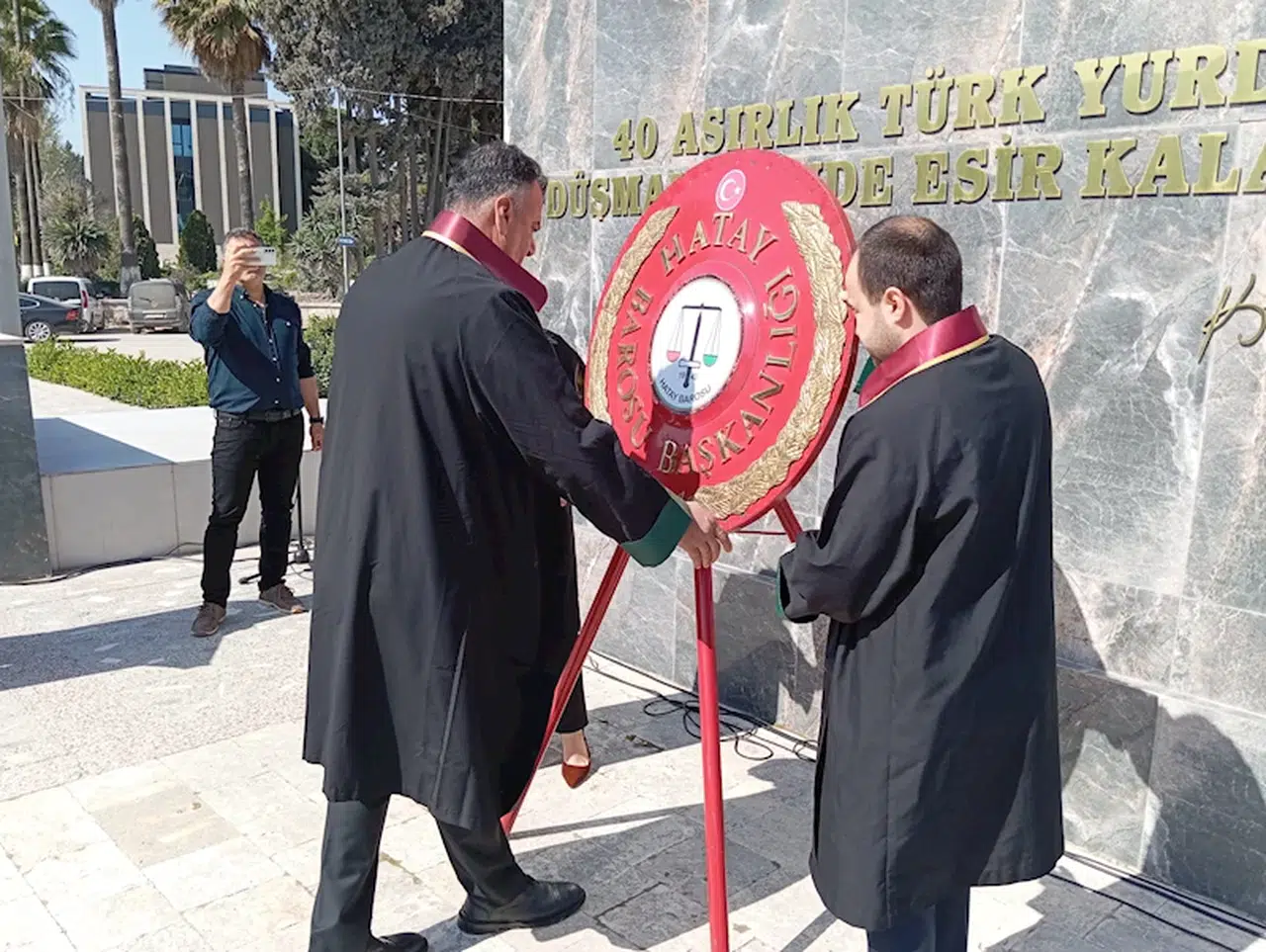 Hatay Barosu Başkanı Hatay Tut ve avukatlar 5 Nisan Avukatlar Günü programları çerçevesinde Antakya’da Atatürk Anıtı’na çelenk sundu.
