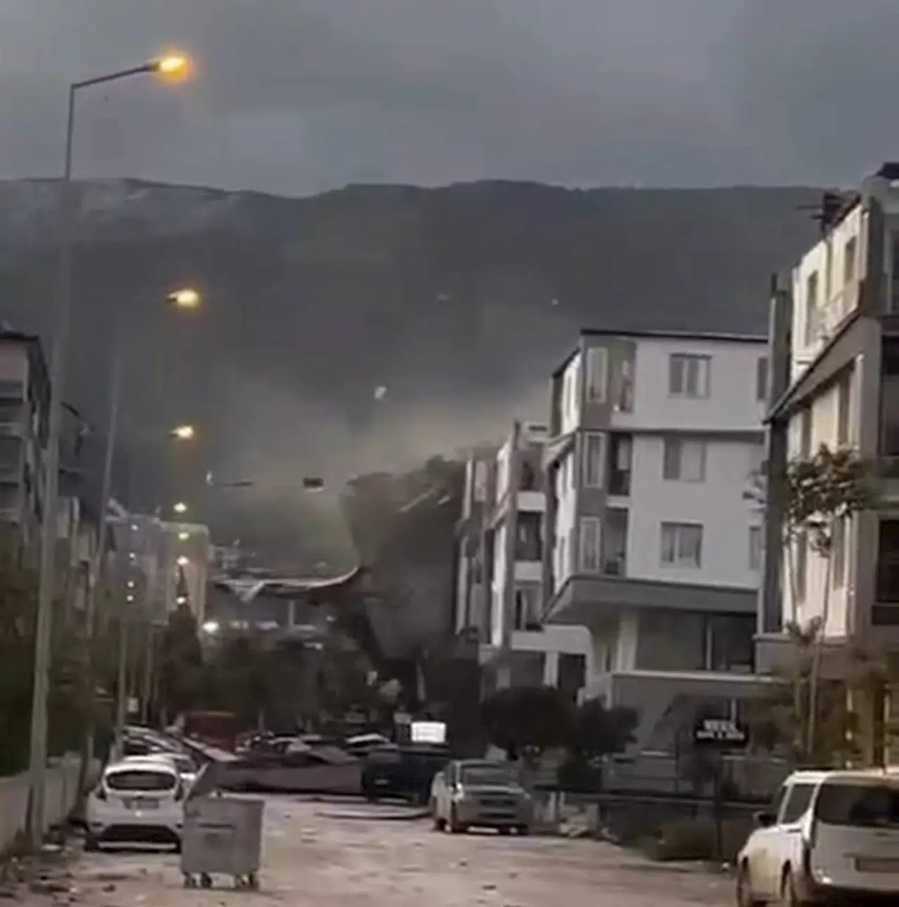 İlçedeki Serinyol Mahallesi'nde saat 17.00 sıralarında etkili olan sağanak ve fırtına nedeniyle bir apartmanın çatısından parçalar kopmaya başladı. Çevredekilerin ihbarıyla bölgeye sağlık, itfaiye ve polis ekipleri sevk edildi. Ekipler çevreyi güvenlik şeridiyle kapatarak önlem aldı. Kısa süre sonra çatının büyük bölümü fırtına nedeniyle uçarak çevredeki binalara çarptıktan sonra yola düştü. Alınan önlemler sayesinde ölen ya da yaralanan olmadı. Çatının uçma anı çevredeki bir vatandaş tarafından cep telefonuyla kaydedildi. (DHA)