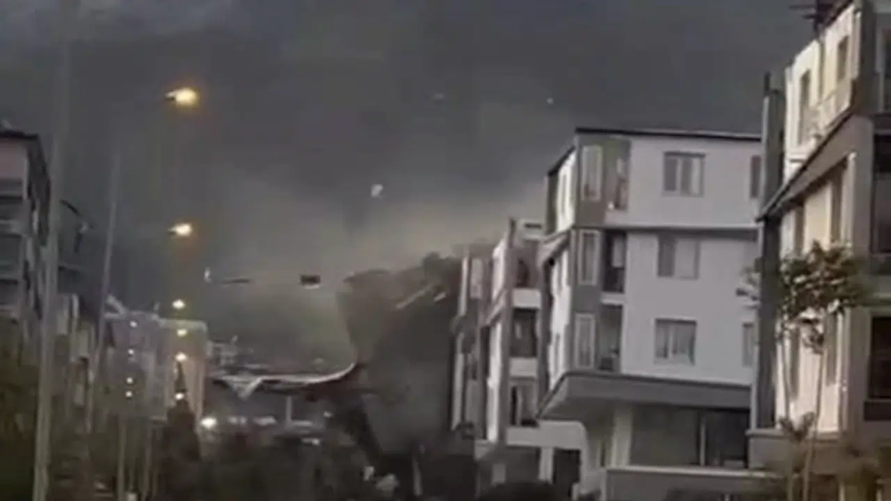 Alican GÜMÜŞ/ HATAY, (DHA)- HATAY'ın Antakya ilçesinde fırtına nedeniyle bir apartmanın çatısı uçtu. O anlar, cep telefonu kamerasıyla kaydedildi.