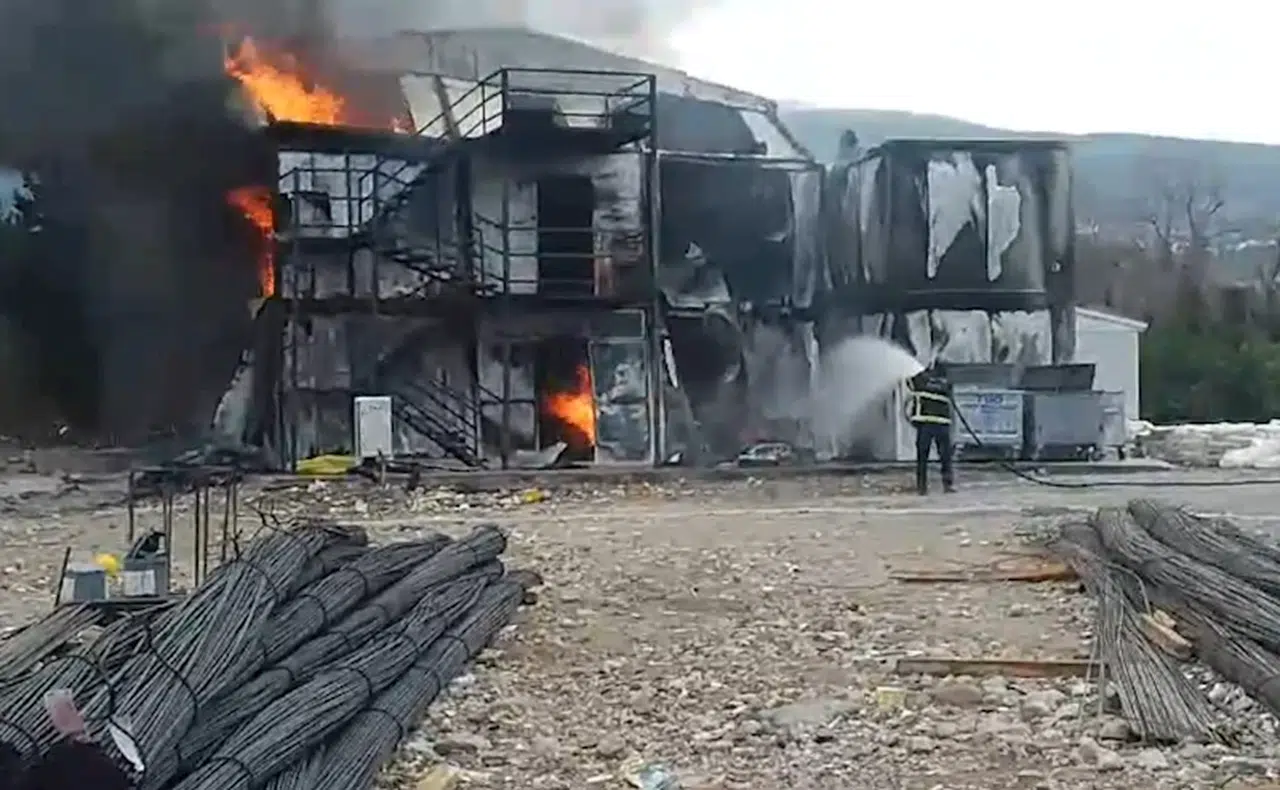 Ufuk AKTUĞ/İSKENDERUN (Hatay), (DHA)- HATAY'ın Arsuz ilçesinde yapımı devam eden özel bir okul inşaatında işçilerin konakladığı konteynerler yandı. Kimsenin olmadığı konteynerlerdeki yangın, yaklaşık 1 saatte söndürüldü.
