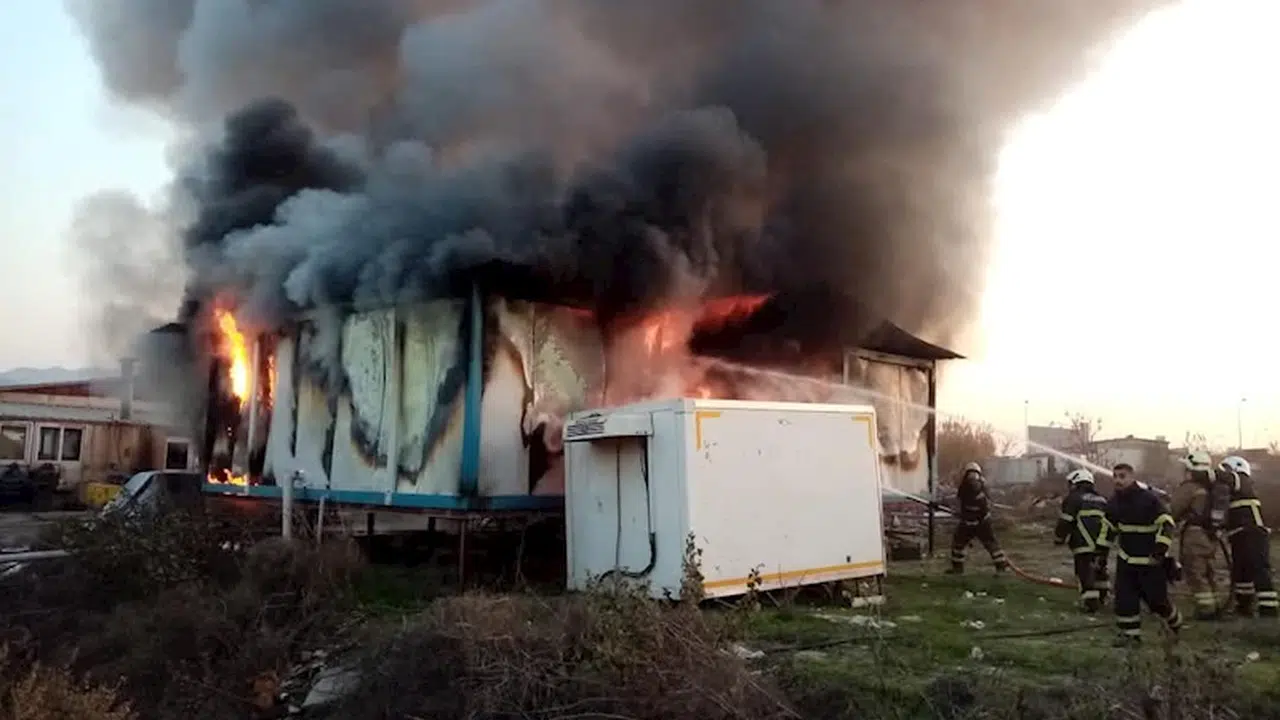 Alican GÜMÜŞ/HATAY, (DHA)- HATAY'da depremzede ailenin yaşadığı konteynerde çıkan yangın, itfaiye ekibinin müdahalesiyle söndürüldü.