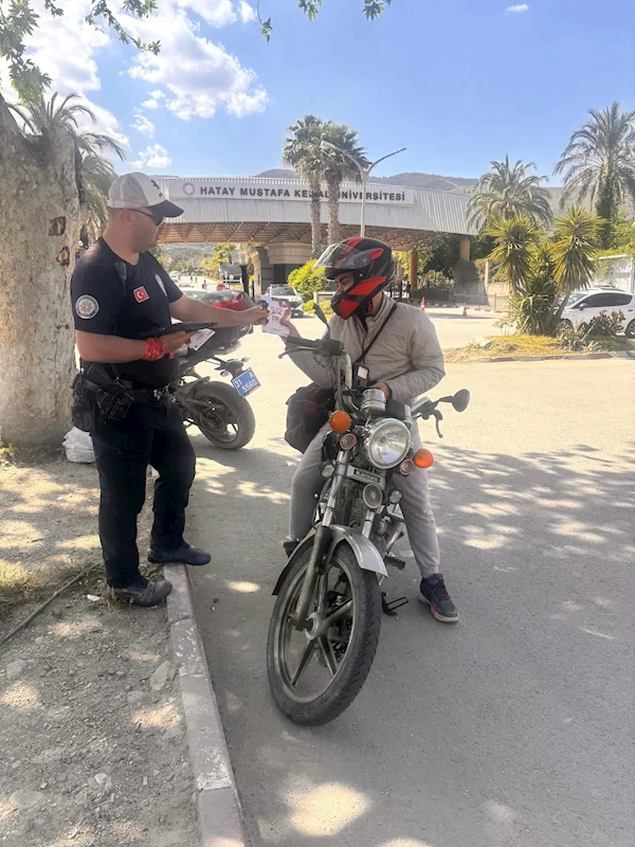 Samim SELÇUK/ HATAY, (DHA)- HATAY Emniyet Müdürlüğü ekipleri, İçişleri Bakanlığı tarafından başlatılan ‘Bir Kural Bir Ömür’ farkındalık kampanyası kapsamında 15 ilçede motosiklet sürücülerine uyarıda bulundu.