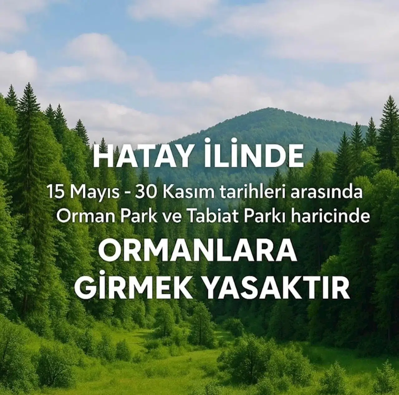 Samim SELÇUK/ HATAY, (DHA) – HATAY Orman Bölge Müdürlüğü, 15 Mayıs - 30 Kasım tarihleri arasında orman alanlarına girişlerin yasaklandığını duyurdu.