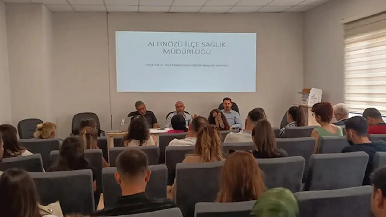 Samim SELÇUK/ Hatay, (DHA) – HATAY’ın pilot bölgesi seçilen Altınözü’nde Sağlık Bakanlığı ve Dünya Sağlık Örgütü tarafından Psikososyal Destek Koordinasyon Kurulu kararları gereğince toplantı düzenlendi.