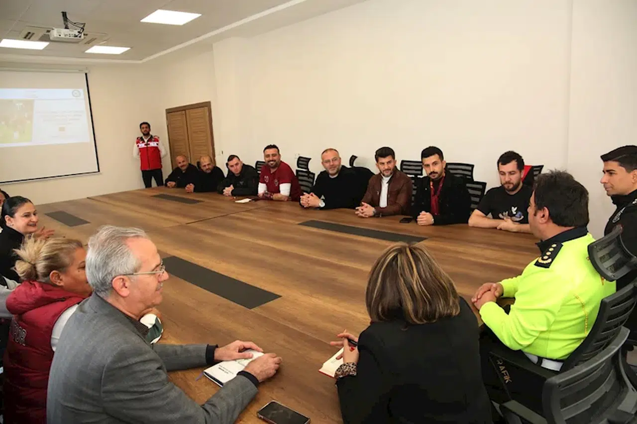 Katılımcılar, görüş ve önerilerini dile getirerek, taraftarlar arasında sağduyulu bir ortam oluşturulması için yapılabilecek çalışmalar üzerine fikir alışverişinde bulundu. Toplantının, Hatay’daki spor camiasında huzur ve güvenin sağlanmasına katkı sunması amaçlanıyor. (DHA)