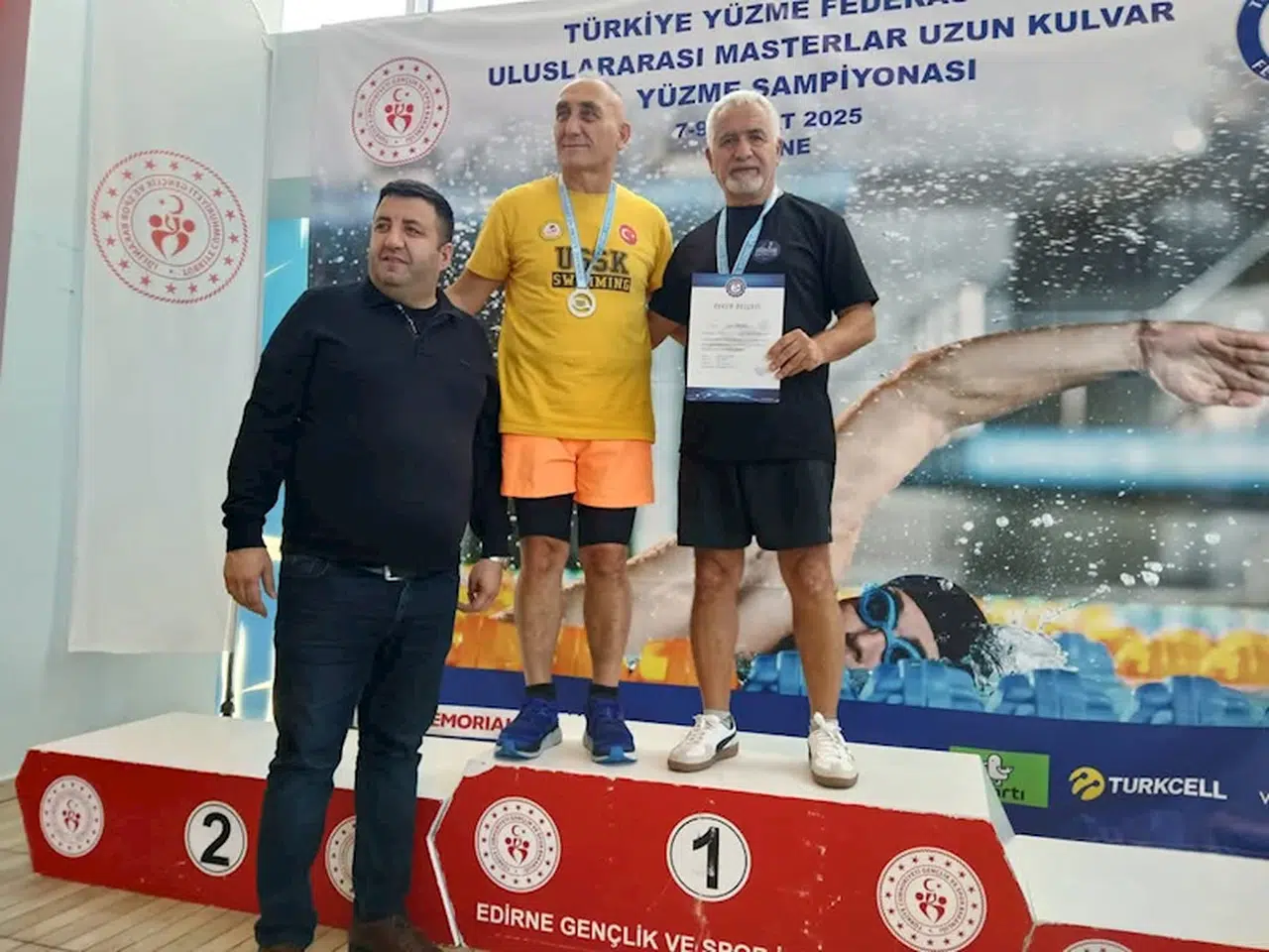 Ferhat DERVİŞOĞLU/REYHANLI(Hatay),(DHA)- HATAYLI milli yüzücü Kamil Köseoğlu, Edirne’de yapılan Uluslararası Uzun Kulvar Masterler Yüzme Yarışlarında 65-69 yaş kategorisinde, 1500 metre serbestte birinci oldu.