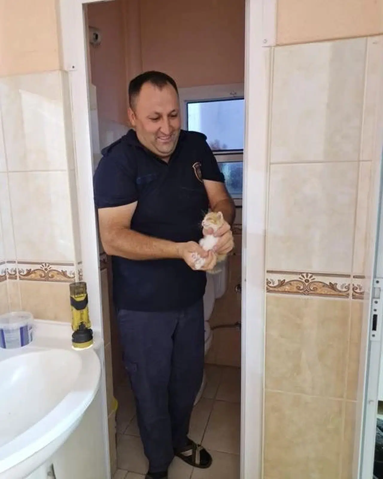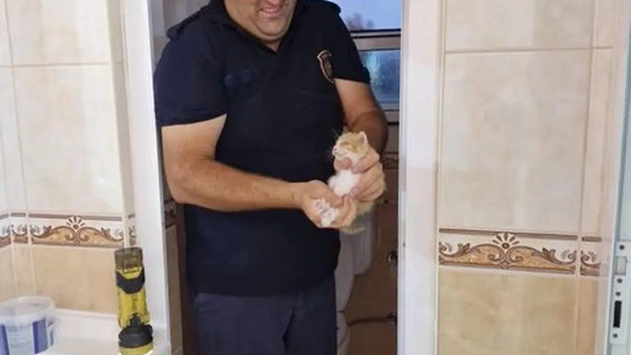 Ferhat DERVİŞOĞLU(HATAY),(DHA)- HATAY’ın Arsuz ilçesinde bir binanın havalandırma boşluğuna düşen yavru kedi itfaiye ekiplerince kurtarıldı.