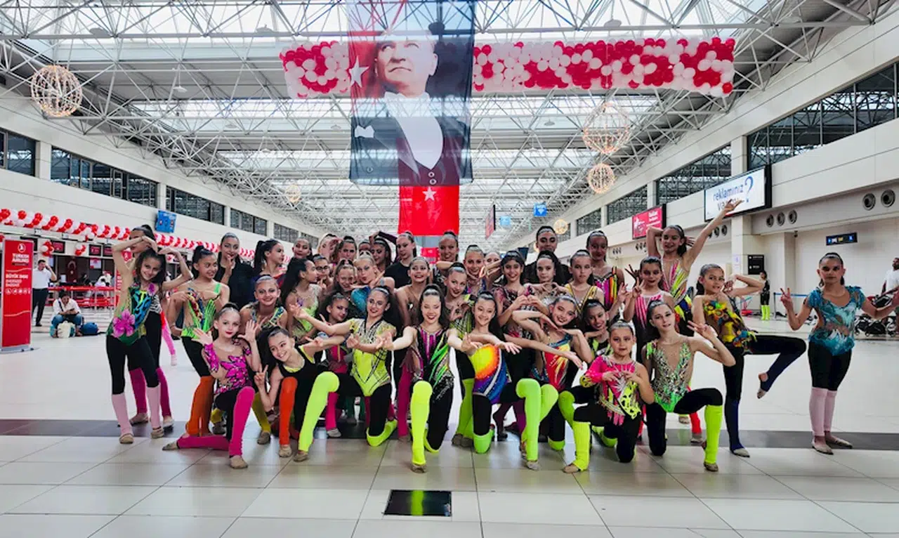 Çeşitli illerden 19 Mayıs programları kapsamında Antalya'ya gelen gençler, Aspendos ve Karaalioğlu Parkı'nda gerçekleşen gösterilerin ardından, Fraport TAV Antalya Havalimanı içerisinde de modern dans, vals, Kafkas, break dans, salsa ve ritmik cimnastik gibi özel gösteriler sergiledi. Yerli ve yabancı turistlerin yoğun ilgisi altında gerçekleşen gösteriler hem büyük beğeni topladı hem de unutulmaz anlara sahne oldu.