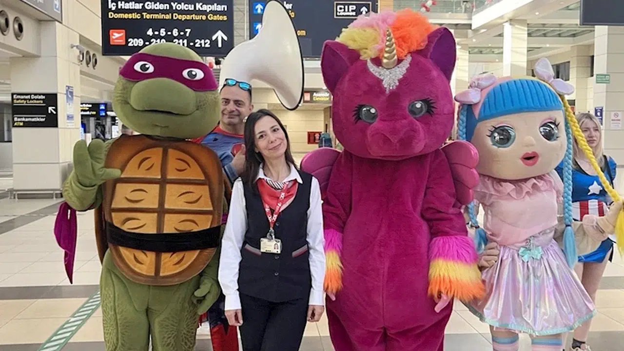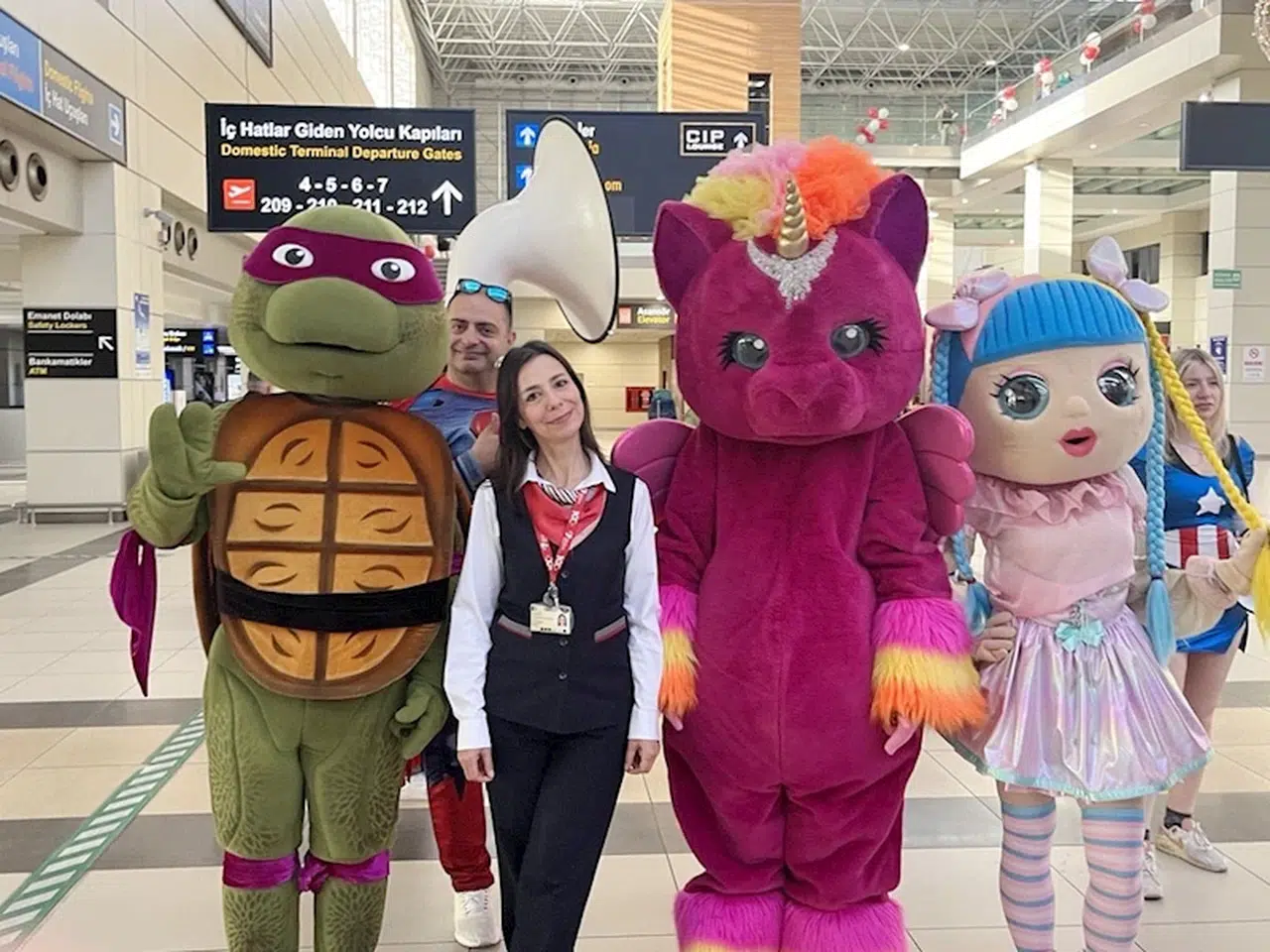 Terminalin farklı noktalarında yürüyen bando eşliğinde gerçekleşen kutlamalarda, bayram coşkusu havalimanının her köşesine yayıldı. Rengarenk kostümleriyle My Little Pony, Ninja Kaplumbağa ve LOL karakterlerinden oluşan üç maskot çocuklarla fotoğraf çektirdi.