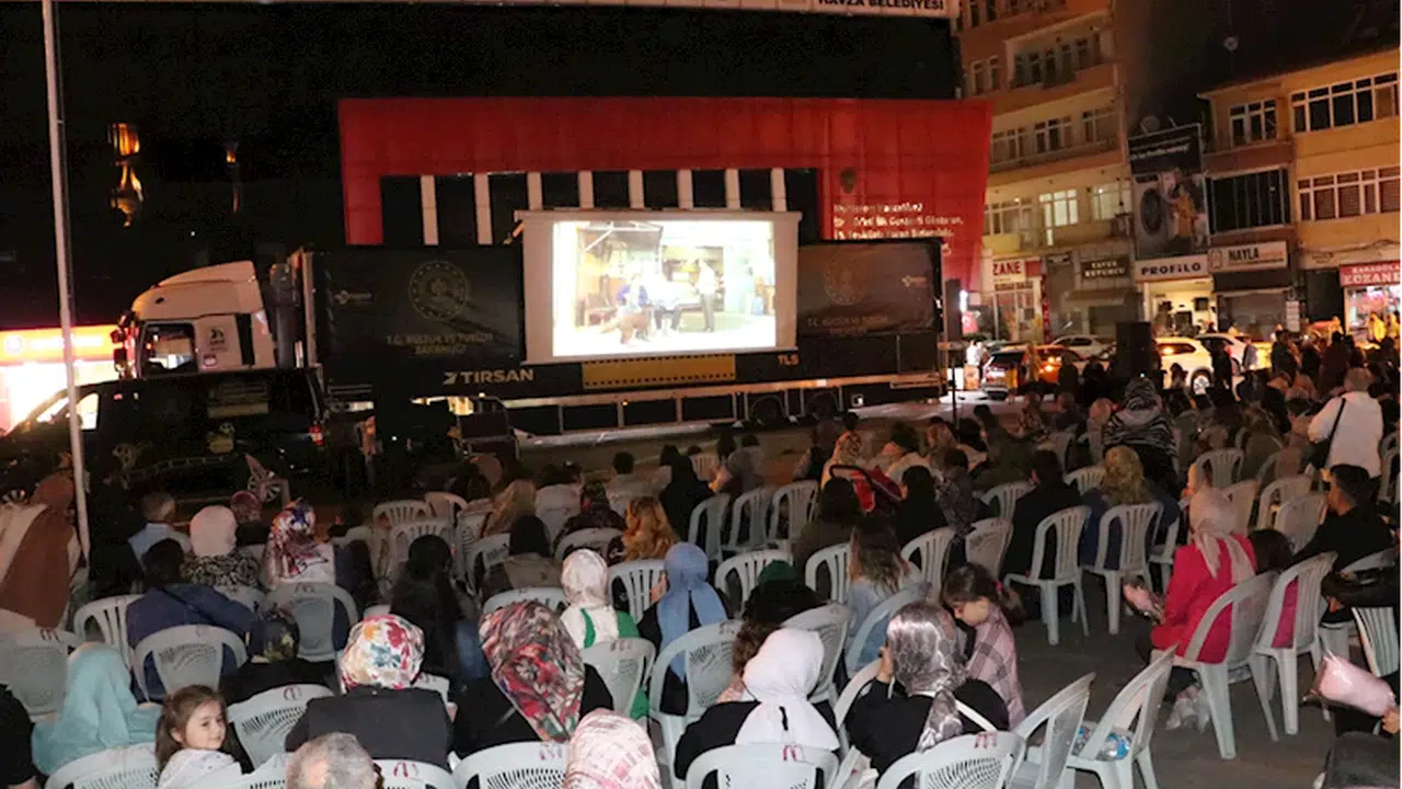 Konuşmanın ardından meydana konuşlandırılan Kültür ve Turizm Bakanlığına ait Gezen Sinema Tırı ile açık hava sinema gösterimi yapıldı.