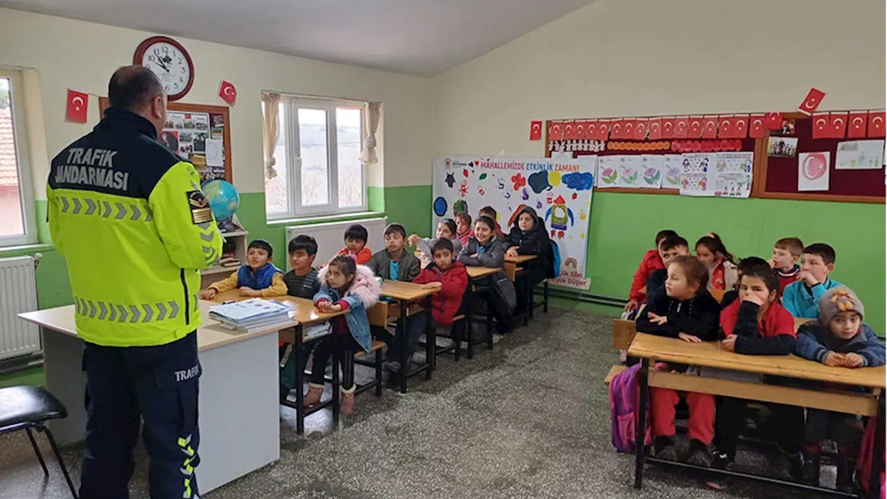 SAMSUN (AA) - Samsun İl Jandarma Komutanlığına bağlı Havza Trafik Jandarma ekipleri, Trafik Dedektifleri Projesi faaliyetleri kapsamında kırsal mahallelerde öğrencilere trafik eğitimi verdi.