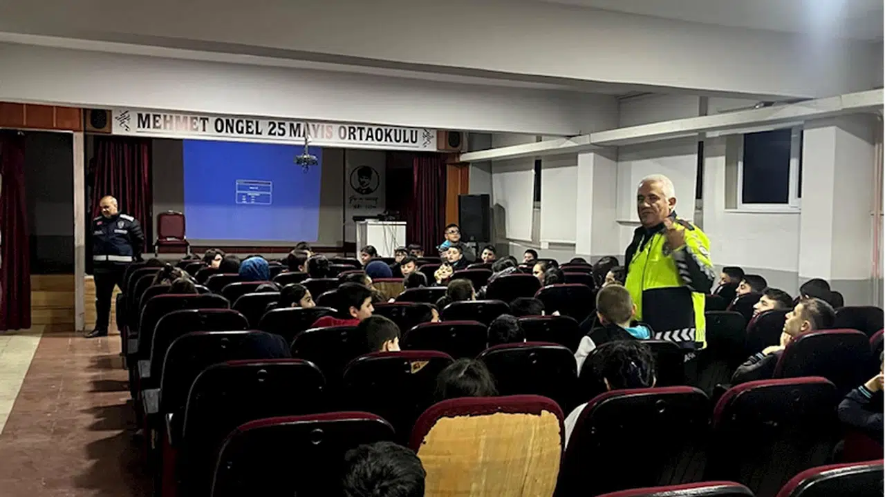 Toplum destekli polis Özkan Cinbek ve trafik polisi Osman Özmen, Mehmet Öngel 25 Mayıs Ortaokulu öğrencilere yönelik seminerde, teknolojideki haberleşme ve iletişimin geldiği nokta, güvenli internet kullanımı ile bilişim suçları ve cezai müeyyideleri konularıyla trafik kuralları ve uyulması gerekenler hakkında bilgilendirmede bulundu.