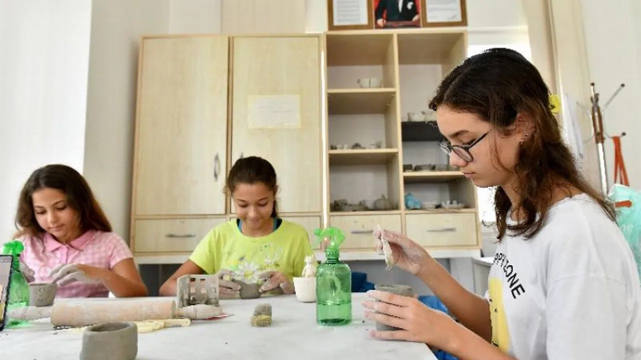 Antalya’da Muratpaşa Belediyesi’nin çocukları bilgisayar başından kaldıran, cep telefonlarını bir kenara bıraktıran yaz kurslarının seramik sınıfı öğrencisi Sofya Altun, “Ev için farklı süsler yapıyorum ama kendim yaratıyorum” dedi.