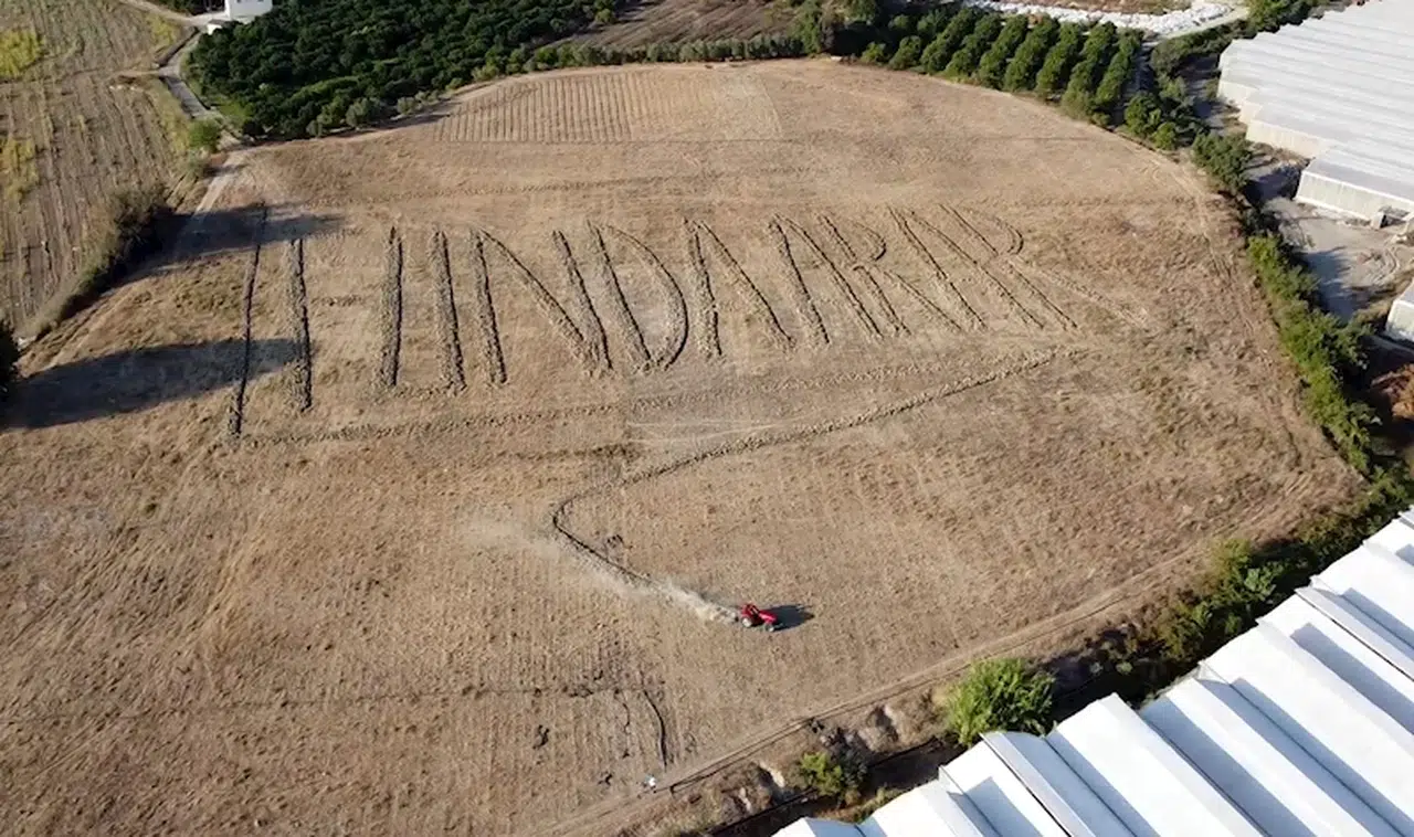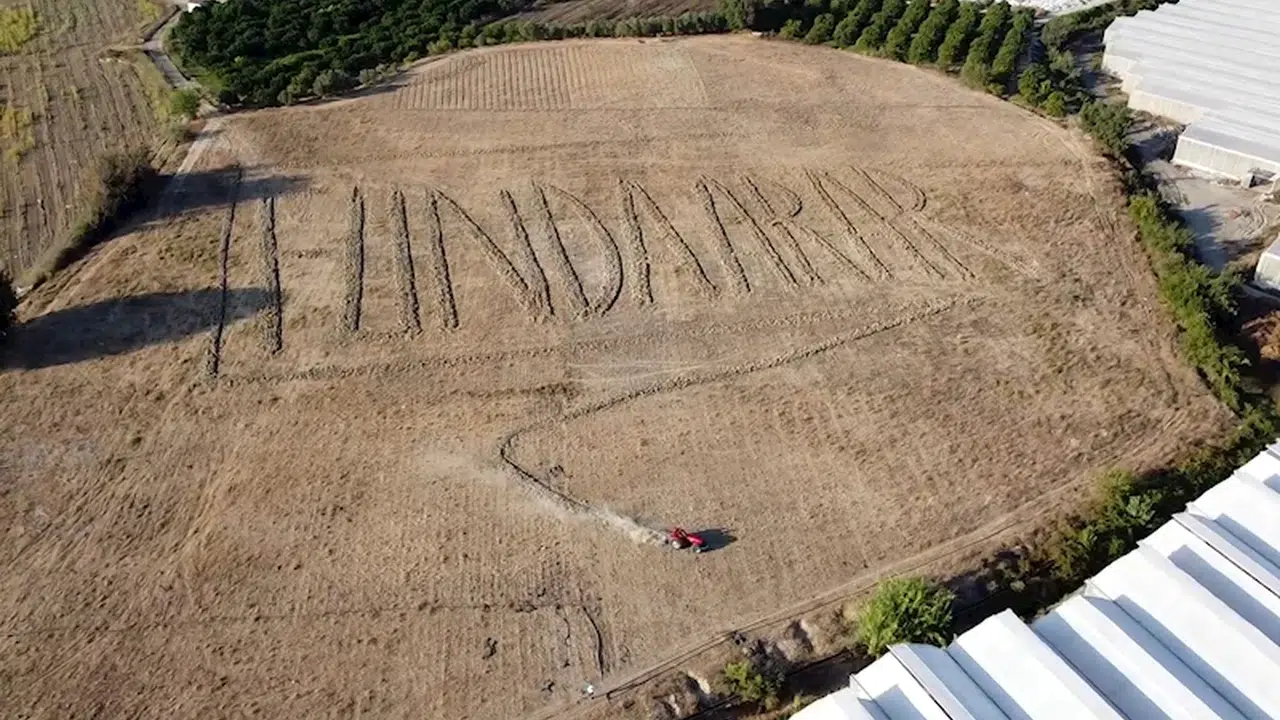 Tarlaya isim yazmanın kolay olmadığını, bunun için bir gün çalıştığını belirten Atakan Şahin, "Çiftçilikle uğraşıyorum. Hayranlığımı göstermek için traktörle yazı yazıp, farkındalık oluşturmak istedim. Traktörle tarla içerisinde özenle yazdık. Kolay gibi görünse de yapması zor bir iş. Tamamen kendi traktörümle ve ekipmanlarımla yazmam bir günümü aldı. Önce krokisini çıkardık ve ona göre planladık. Traktörün pulluk kısmıyla yazdım" diye konuştu. (DHA)