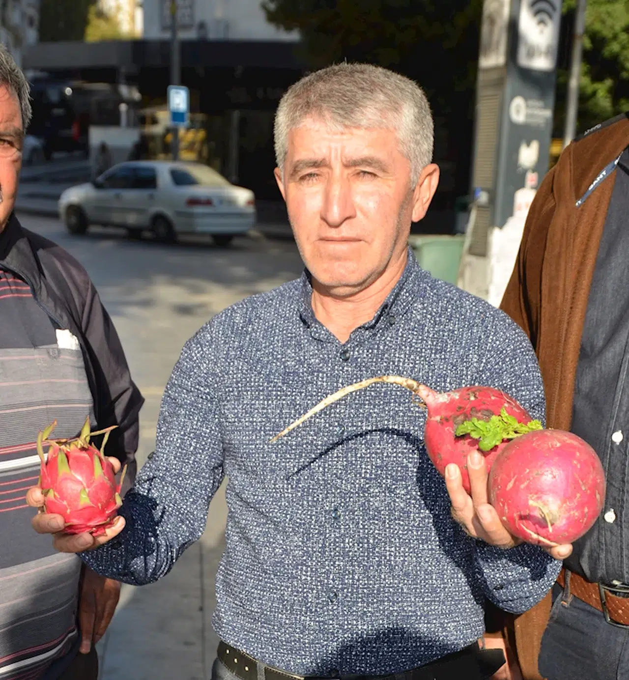 Namık Kemal KILINÇ/SERİK (Antalya), (DHA)- ANTALYA'nın Serik ilçesinde üretici Beyazıt Işık (50), Donald Trump yeniden ABD başkanı seçilince halka ücretsiz turp ve ejder meyvesi dağıttı. Işık, "1995 yılından bu tarafa kendisinin hayranıyım. 1995 yılında ABD'de bulunduğum süre içerisinde kendisiyle görüşmüştüm. Zaferi kazanmasının ardından 2 bin ejder meyvesi dağıttım. Turp, Trump başkanın simgesidir" dedi.