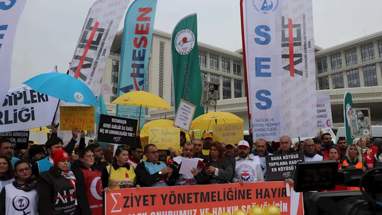 Hekim Birliği Sendikası İdari İşlerden Sorumlu Genel Başkan Yardımcısı Op. Dr. Çağlar Yıldırım ise “Bizim amacımız Türkiye'de ideal sağlık sektörünün hizmetini kamu eliyle ücretsiz şekilde gerçekleşmektir. En büyük talebimiz sağlıkta şiddetin son bulmasıdır. Biliyorsunuz şu anda havaalanlarına, valiliğe, belediyeye, adliyeye tırnak makasıyla giremezken hastanelere çakı, bıçak en son Kahramanmaraş'ta pompalı tüfekle girilmiştir. Bunu kabul etmiyoruz. Gerekli önlemlerin alınmasını istiyoruz. Şiddeti önleyici önlemlerin alınmasını istiyoruz. Bir diğer durum özlük haklarımız. Türkiye'de en meşakkatli eğitimlerden gelen en meşakkatli sınavları geçen gençliğini kitap sayfalarının arasında bırakan hekim ve sağlık profesyonelleri maalesef bir sonraki ayın 15’inde kaç lira maaş alacaklarını bilmeden çalışmaktadırlar. Anayasal izin hakkımız olan izin hakkımızı kullandığımızda, maaşımızın yarıya yakını kesilmektedir. Bunun dışında anne olduğumuzda, baba olduğumuzda, yakınımız vefat ettiğinde, evlendiğimizde, izin aldığımızda, devletimiz bizim maaşımızı kesmektedir” diye konuştu.