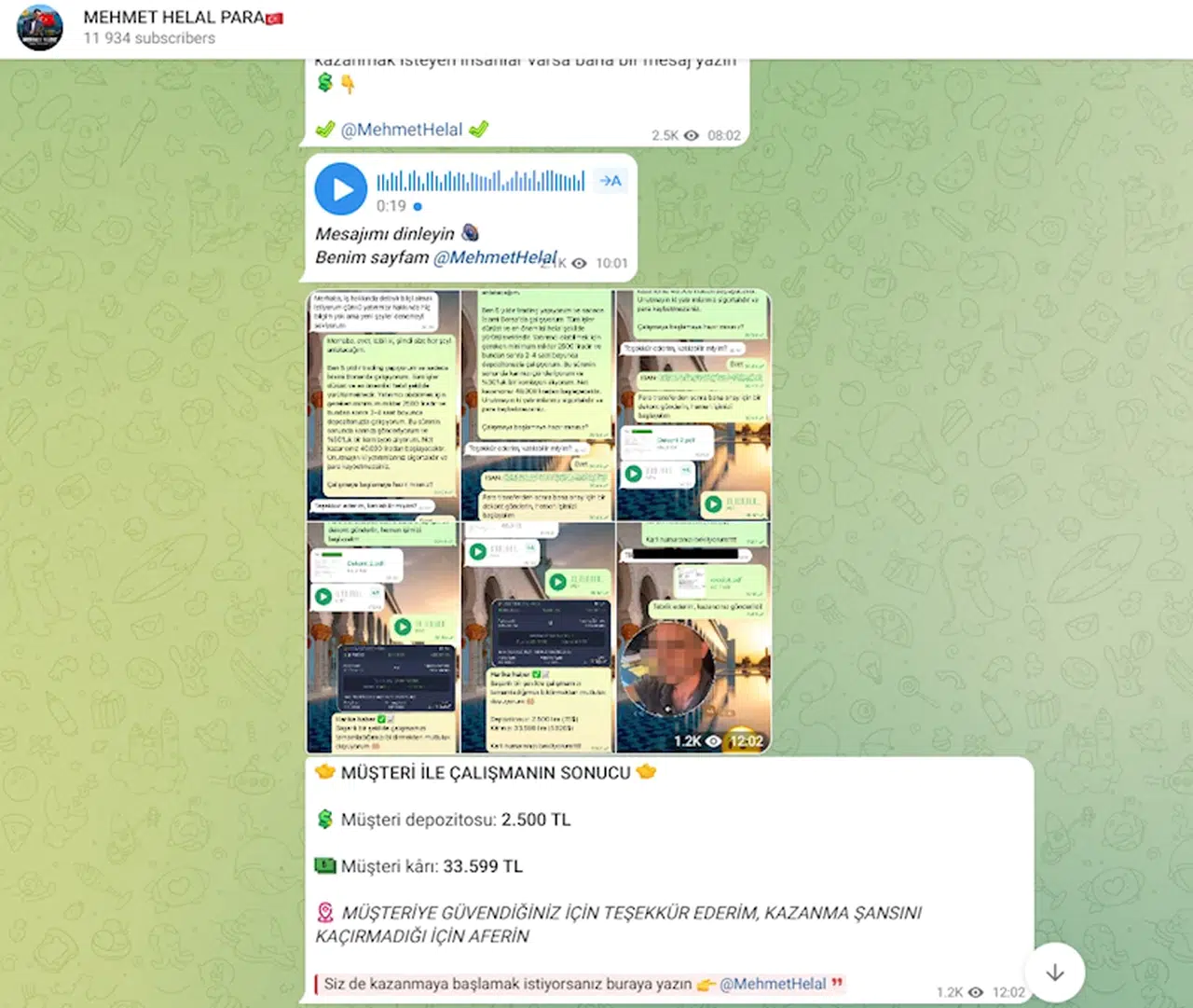İstanbul’da yaşadığını ve isminin Mehmet Y. olduğunu söyleyen kişi, sosyal medya platformunda 'Mehmet Helal Para' adıyla kanal açtı. Mehmet Y., iletişime geçtiği kişilere dindar bir insan olduğunu ve helal para kazandıracağını vadetti. Mehmet Y., paylaştığı mesajlarında "Birkaç yıl önce ailemi geçindirecek kadar para kazanmıyordum ve bazen yiyecek alacak param bile yoktu. Zengin bir hayatın hayalini kuruyordum ve başarılı olmak için her gün sıkı çalışıyordum. En sıradan aileden gelen sıradan bir adamım ve her zaman lüks arabalarla gezmeyi, restoranlarda yemek yemeyi, en iyi markaları giymeyi hayal ediyordum. Çalıştım ve para getirecek bir iş alanı aradım, ama en önemlisi helal para olması gerekiyordu. Dindar bir insanım ve bu benim için çok önemli. Birçok insanın benzer bir durumda yaşadığını biliyorum ve bu çok üzücü. Bu yüzden, başkalarına en iyisini hak ettiklerini anlamalarına yardımcı olmak istiyorum" ifadelerini kullandı.
