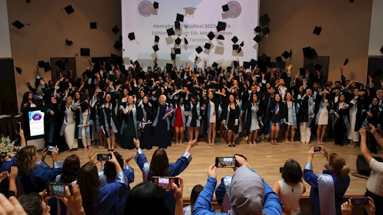 Dekan Özer, öğrencileri mezun oldukları için tebrik ederken emeği geçen akademisyenlere teşekkür etti. Konuşmaların ardından mezunlara Hemşirelik Yeminleri, Dekan Yardımcıları Doç. Dr. İlkay Boz, Doç. Dr. Kerime Bademli tarafından yaptırıldı. Yeminlerin ardından belgeler akademisyenler tarafından takdim edildi. Mezunlar keplerini fırlatarak mezuniyet coşkusu yaşadı. (DHA)