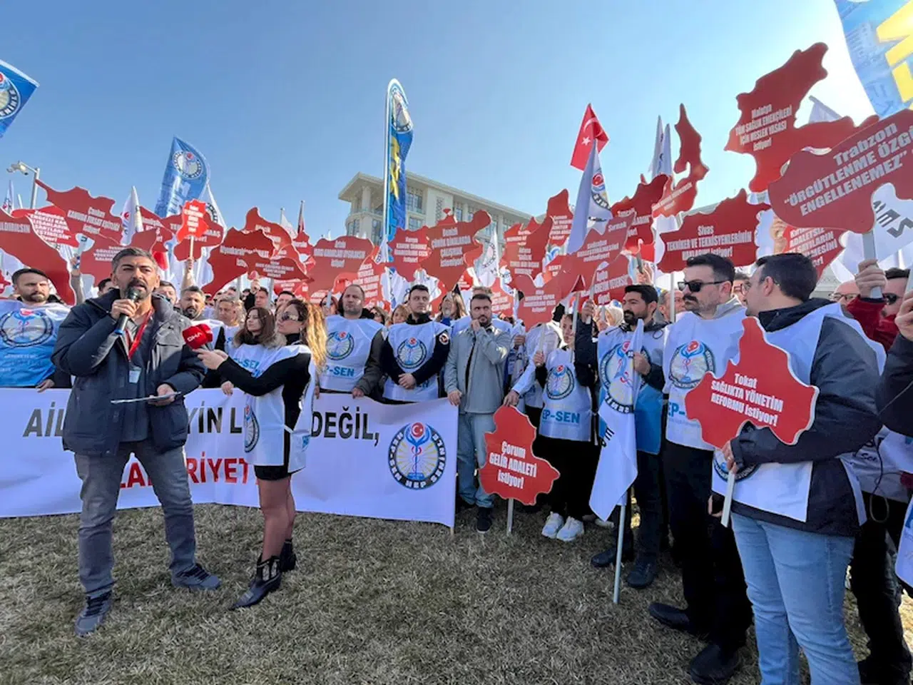 Gizem CENGİL- Mikail KARAMAN/ANKARA,(DHA)- HEP-SEN, Sağlık Bakanlığı ve YÖK binası önünde atanamayan sağlıkçılar ve üniversite hastanelerinde çalışan personelin tayin hakkı, kreş ihtiyacına yönelik basın açıklaması yaptı. Genel Başkan Yunus Şimşek'in yaptığı açıklamada "Yüksek Öğretim Kurumu’na (YÖK) bağlı üniversite hastanelerinde çalışan sağlık personelinin tayin hakkı, kreş ihtiyacı ve yetersiz mevzuat, liyakatsiz yöneticilik ve bakanlık nezdindeki kronik sorunlar çözüm bekliyor” ifadelerine kullanıldı.