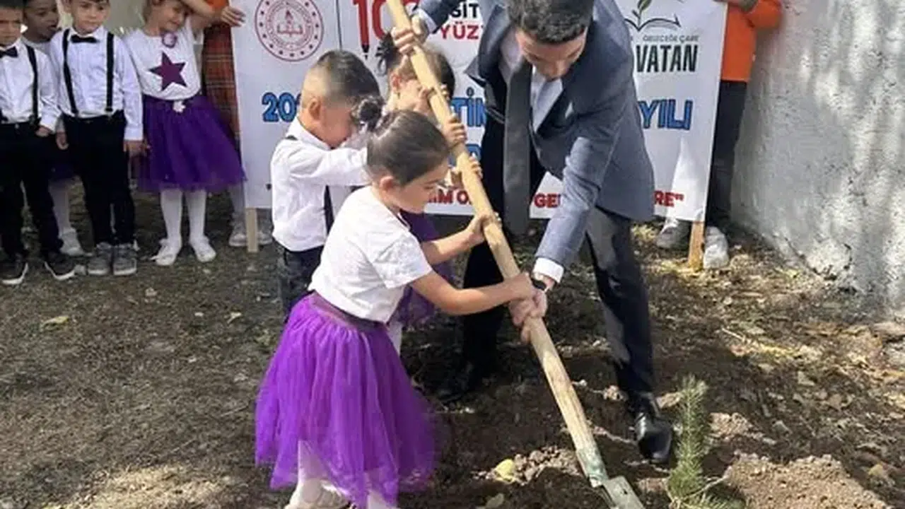 Mümtaz Turhan İlkokulu’nda düzenlenen etkinlikler, bu yıl “Her Çocuğumuz Bir Fidan, İlk Ders Yeşil Vatan” temasıyla dikkat çekti. Program, fidan dikimi etkinliği ile başladı. Öğrenciler ve protokol üyeleri, birlikte toprağa fidan dikerek eğitim ile doğa sevgisini bir araya getiren anlamlı bir mesaj verdi. Bu sembolik etkinlik, öğrencilerin çevre bilinci kazanmaları ve yeşil bir geleceğe katkı sunmaları açısından büyük önem taşıyor.