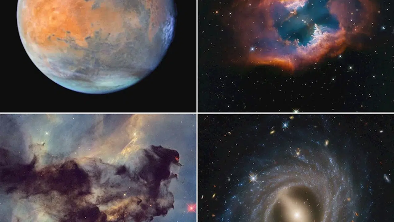 Hubble Uzay Teleskobu’nun Dünya yörüngesine yerleştirilmesinin 35’inci yıl dönümünü kutlayan NASA, teleskop tarafından yakın dönemde elde edilen uzanan dört uzay fotoğrafını kamuoyuyla paylaştı. Yayınlanan görseller arasında Mars gezegeni, yıldız oluşum bölgeleri ve komşu galaksilere ait kareler yer alıyor.