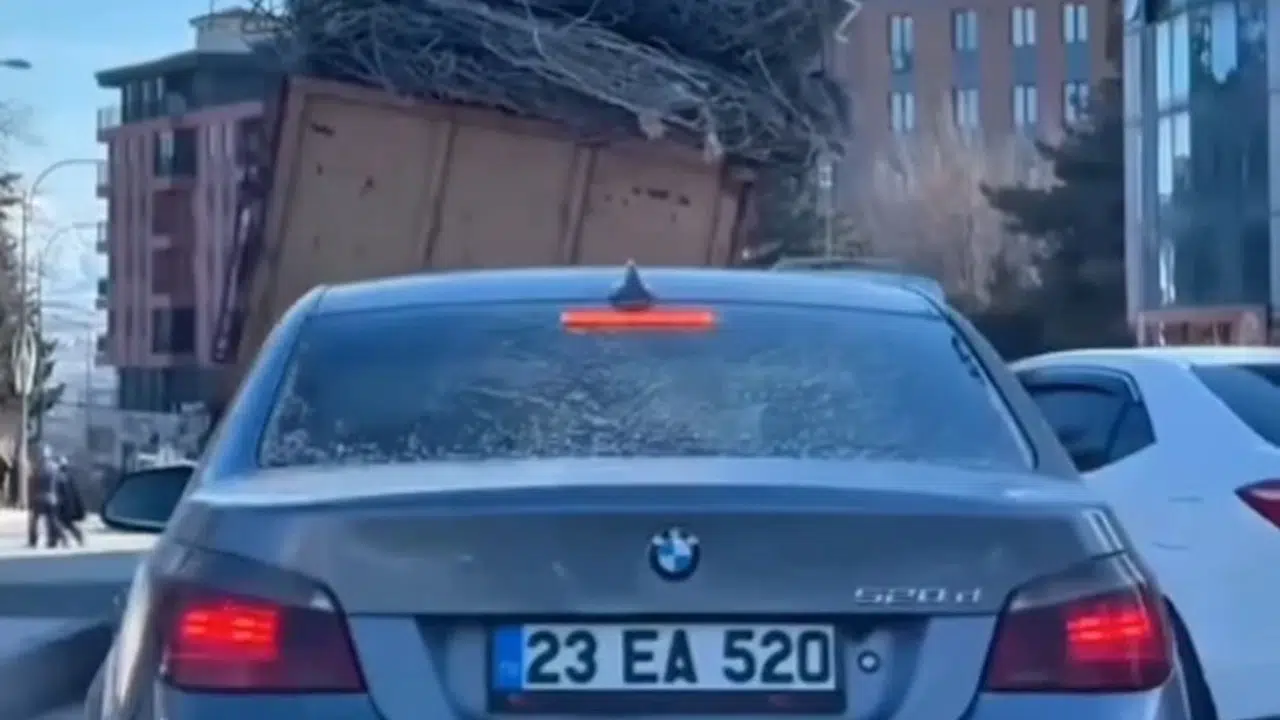 Olay, Kazım Karabekir Caddesi’nde meydana geldi. Sürücüsünün ismi öğrenilmeyen 23 AAJ 551 plakalı kamyonetin, seyir halindeyken aşırı yükün etkisiyle arka lastikleri patladı. Kamyonet devrilme tehlikesi yaşarken, o anlar ise cep telefonu kamerasıyla kaydedildi. Kamyonetin lastiğinin tamir edilmesinin ardından, yükünün bir kısmı vinç yardımıyla başka bir kamyonete alındı. (DHA)